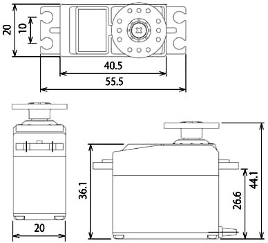 - Рабочая скорость: 0.23с (4.8В), 0.19c (6В);