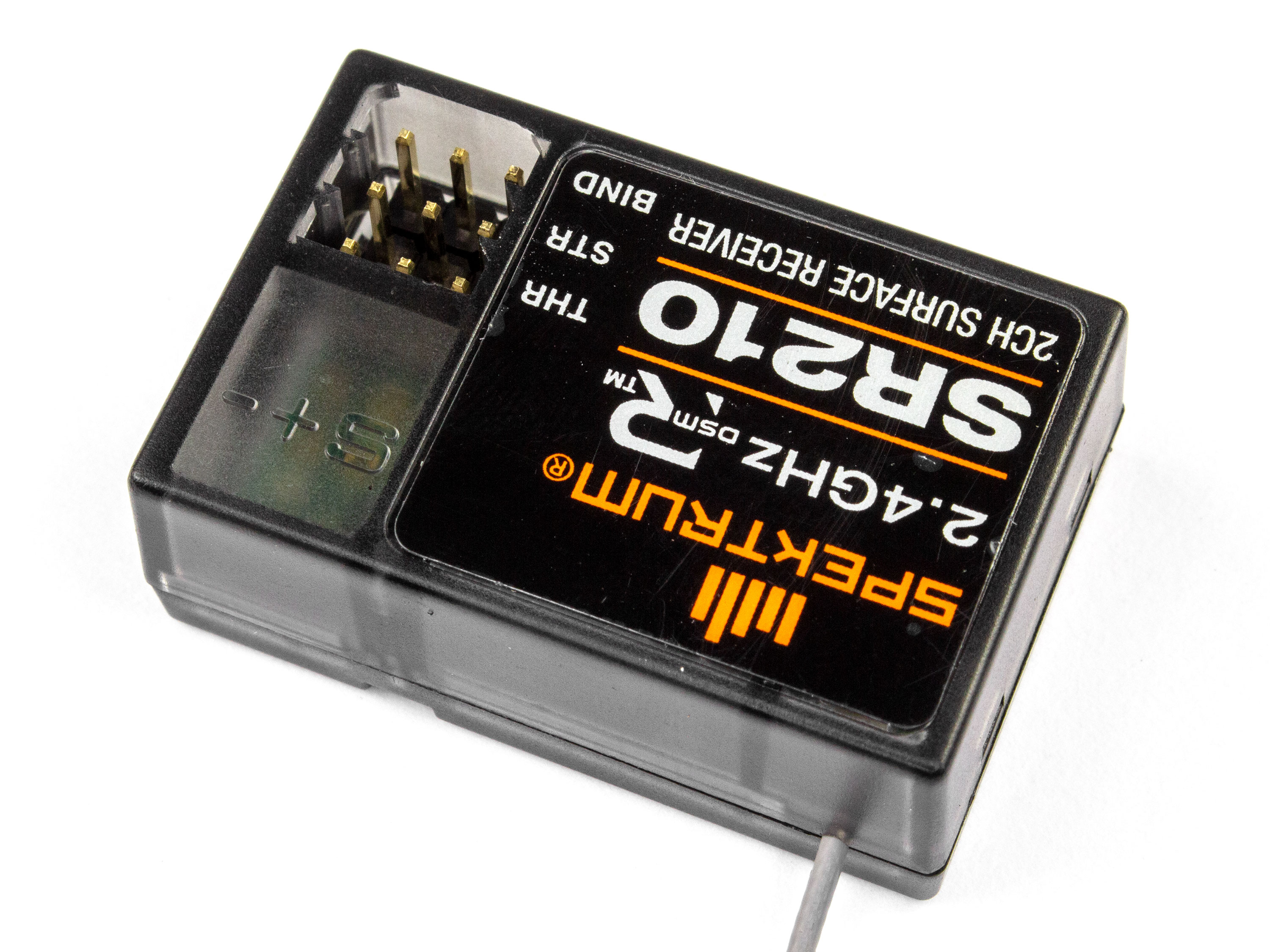 Приемник Spektrum SR210 совместим с DSMR/DSM2 передатчиками. Особенностью данного приемника является водонепроницаемый и топливно-защитный корпус. Технические характеристики: - Частота: 2.4ГГц;