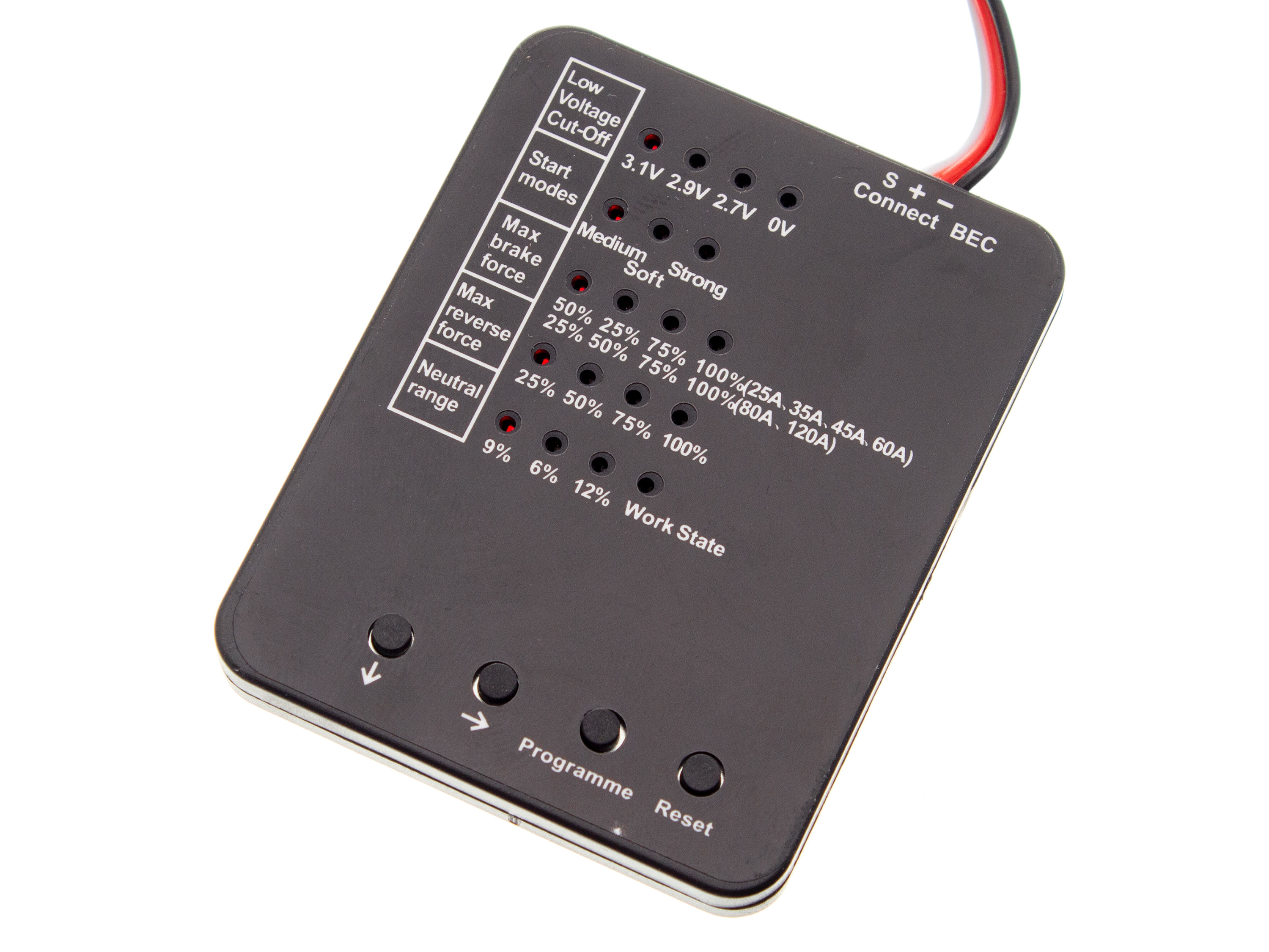 Карта программирования для бесколлекторных регуляторов скорости WP60A. Программируемые функции: