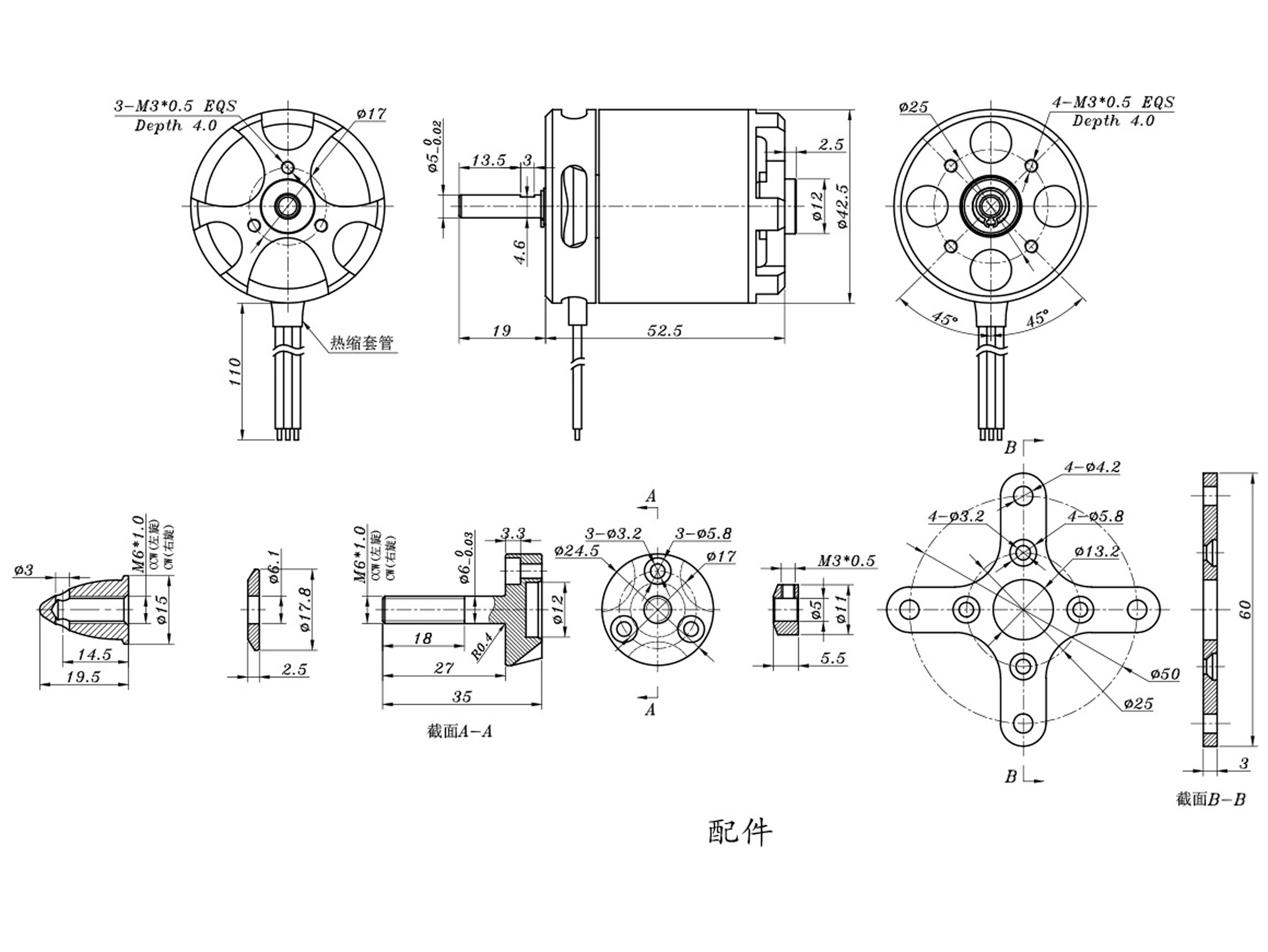 Двигатель бесколлекторный SunnySky X3525-650kv V3 (длинный вал)