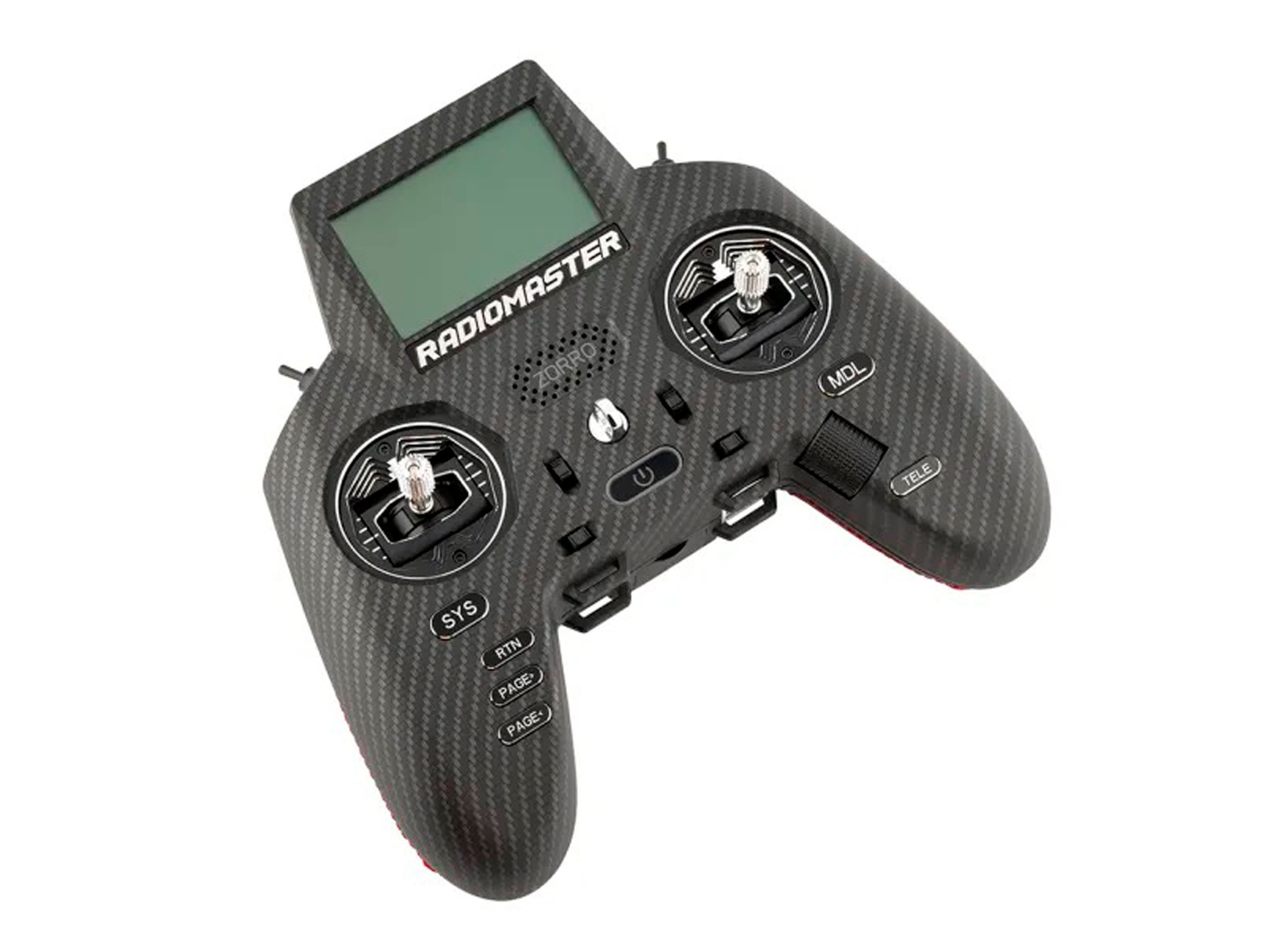 RadioMaster Zorro отличается эргономичным дизайном, большим ярким ЖК-экраном, регулируемыми стиками с датчиками Холла, отсеком для внешнего нано-размерного модуля, поддержкой открытых прошивок OpenTX и EdgeTX, USB-C интерфейсом для обновления прошивки и заряда Li-ion аккумуляторов. MAX версия радиопередатчика оснащена алюминиевым подвесом со стиками на датчиках Холла (AG01), которые более плавные и точнее, чем обычные стики на потенциометрах, а также имеют значительно больший ресурс работы. Также заменены все кнопки управления из пластиковых на алюминиевые. Для питания передатчика используется два элемента Li-ion 18350 или 2S (7.4В) аккумулятор для внешнего использования. Особенности: