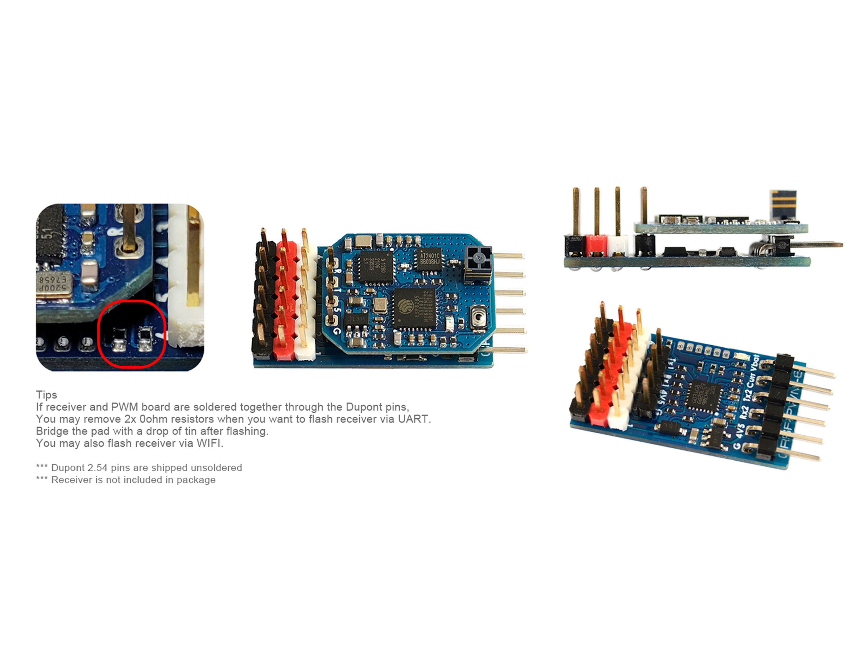 6-канальный конвертер Matek CRSF-PWM предназначен для приема сигнала CRSF (протокол Crossfire) и преобразования его в PWM сигнал, для возможности подключения к 6 устройствам, например, сервомприводов, регулятора скорости и других. Кроме того, конвертер имеет настраиваемый частотный PWM выход, вход внешнего датчика тока и Failsafe. На плате также размещены два порта UART для подключения приемника и GPS, который затем передает координаты вместе с телеметрией Crossfire. Плата Matek не имеет встроенного источника питания, поэтому рассчитана на внешнее питание 5В (например от регулятора скорости или внешнего BEC). Особенности: