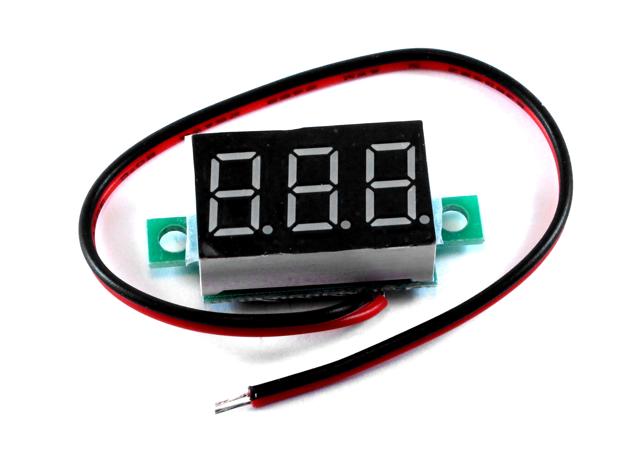 Цифровий міні вольтметр вимірює постійну напругу від 0 до 30В та показує це значення на світлодіодному екрані ультрамалого розміру.