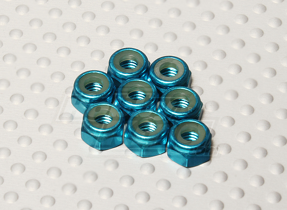 Анодована алюмінієва гайка М4 з нейлоновим фіксатором (синя)
