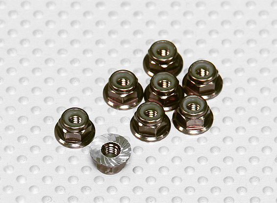 Анодована алюмінієва гайка М4 з нейлоновим фіксатором і зазубреною прижимною площиною