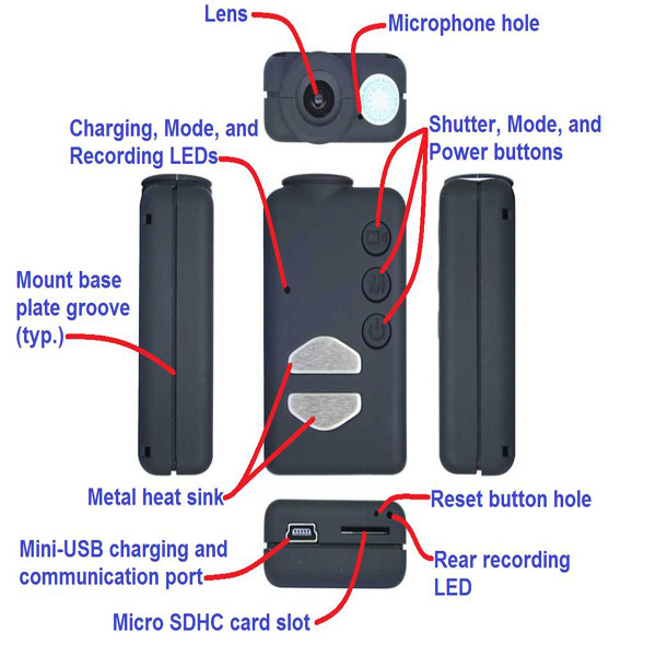 • мигаючі при запису LED світлодіоди, розташовані спереду і ззаду відеокамери