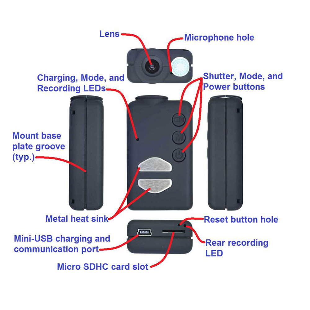 • мигаючі при запису LED світлодіоди, розташовані спереду і ззаду відеокамери