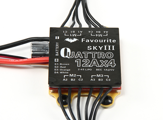 У поєднанні з його здатністю працювати на 2 ~ 4S LiPoly або 5~12 банок Ni-XX, Sky III Quattro 12Ax4 є дуже універсальним ESC для мультикоптерів або навіть кількох двигунів літака!