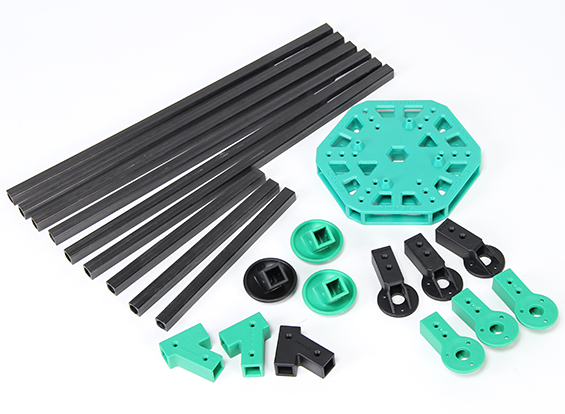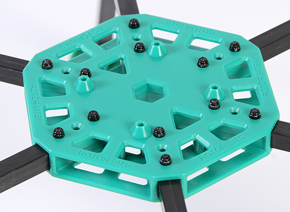 Рама для квадрокоптера RotorBits. Карбонові промені і литі частини з склонаповненого нейлону роблять її надзвичайно міцною. Яскраво забарвлена центральна пластина гексакоптера оздоблена монтажними опорами для кріплення польотного контролера, розташованими на відстані 45х45мм. Також є можливість установки інших комплектуючих і частин Bits.