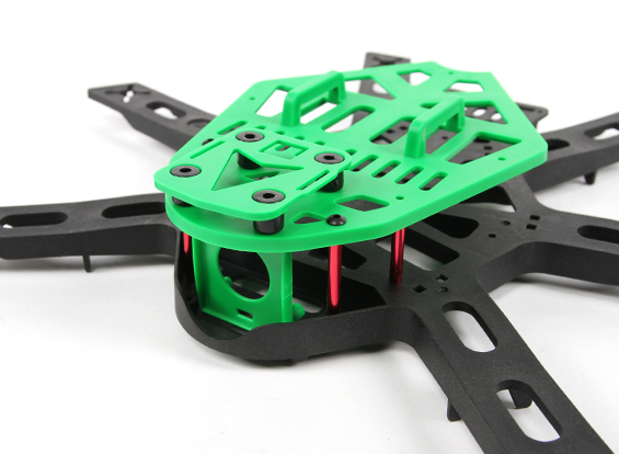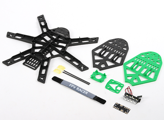 Рама Kingkong Hex 300 виготовлена з міцного пластику і комплектується регульованою та стійкою до вібрації платформою для монтажу камери, а також LED світлодіодами для використання FPV.