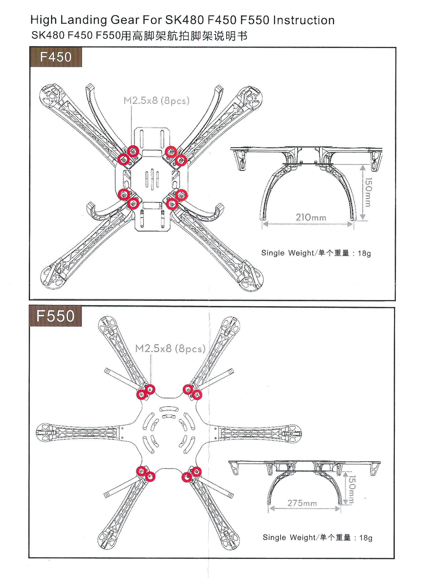 Посадочні ноги для рам F450/F550
