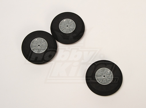 Колесо для шасі авіамоделей 70мм. Колесо зроблено з піни, а диск - з міцного пластику.