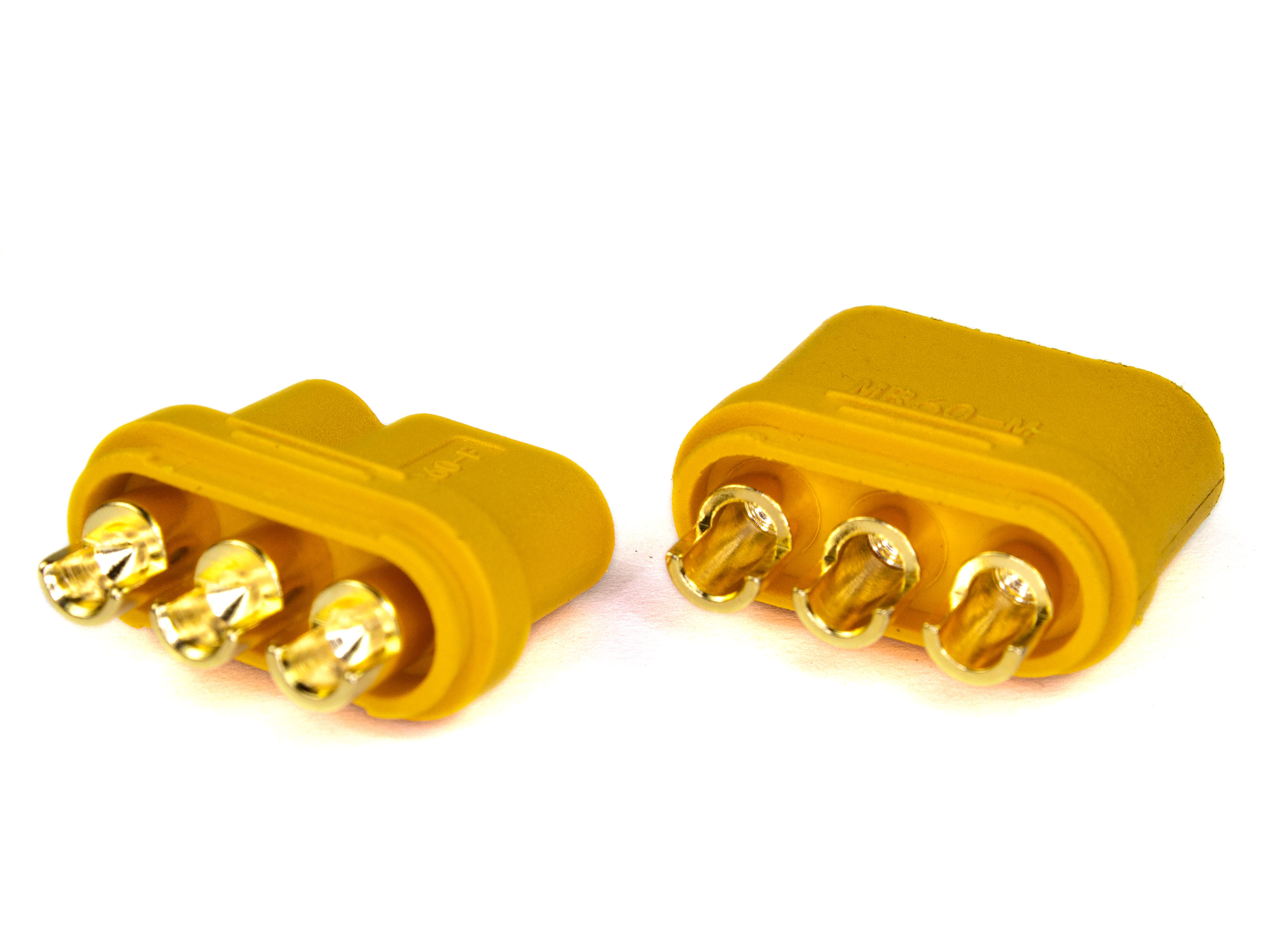 Триполюсні роз'єми будуть чудовим рішенням для з'єднання безколекторного двигуна з різними регуляторами (для моторів, які споживають до 60А). MR60 сумісні зі звичайними 3.5мм роз'ємами. На корпусі є ключ, завдяки якому гарантується єдине правильне з'єднання. Технічні характеристики: