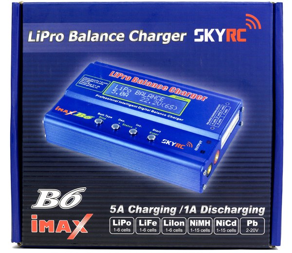Imax B6 - розумний універсальний зарядний пристрій, що дозволяє швидко заряджати та розряджати більшість типів акумуляторів і батарей : Li -Po , Li- Fe , NiCd і NiMH . Якісно заряджає і балансує літієві батареї до 6 банок , використовувані в більшості радіокерованих моделей , що необхідно для їх тривалого і безпечного використання. Процес заряду повністю автоматичний і керується мікроконтролером . Заряд переривається у разі виявлення несправності або при досягненні встановленого ліміту : відсічення по струму і напрузі для літієвих акумуляторів , по температурі і дельта- пік для нікелевих . Для всіх типів акумуляторів можлива настройка авто відключення по максимальному часу і ємності.