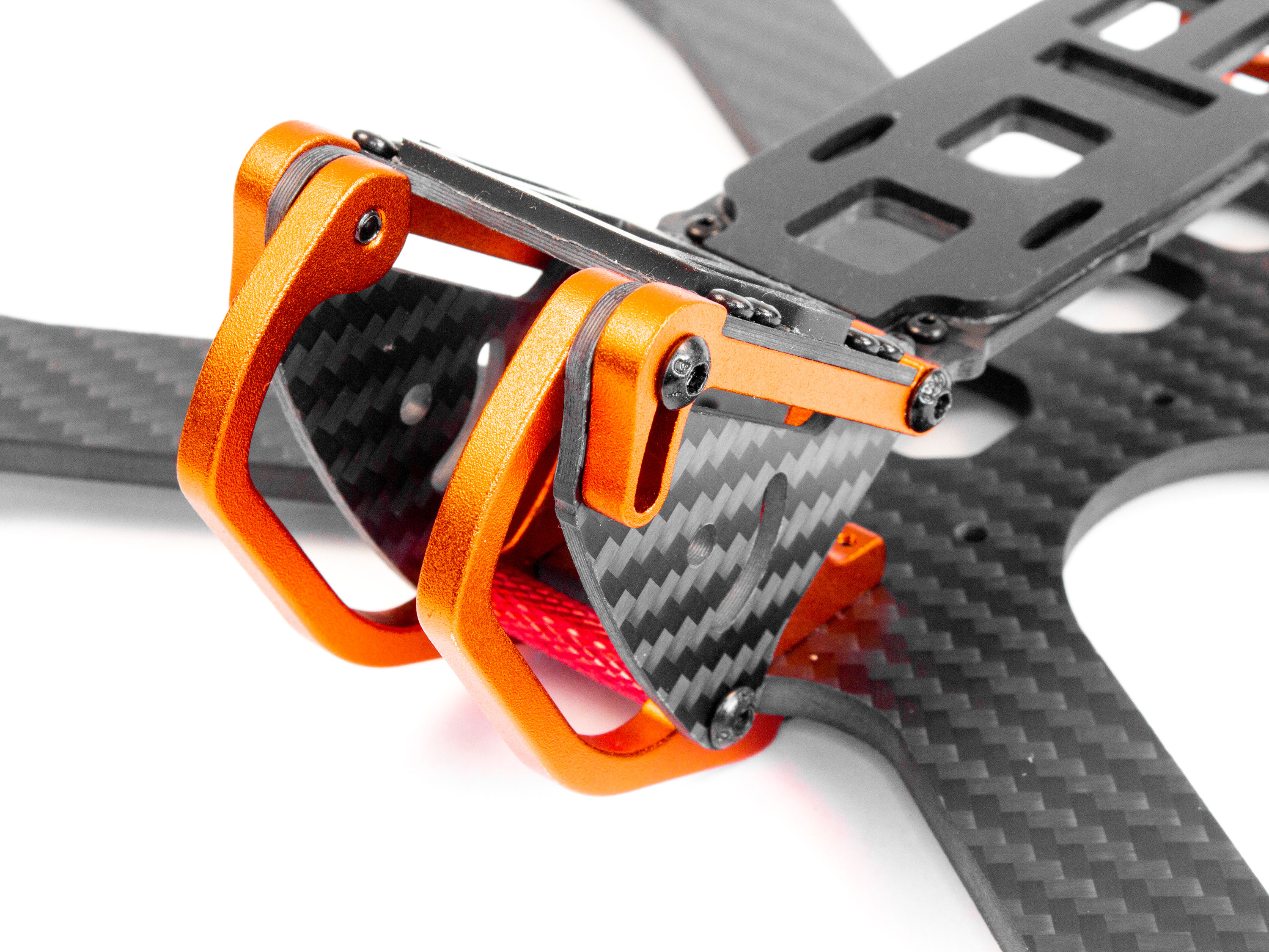 Нижня пластина рами Chameleon виготовлена з цільної карбонової пластини товщиною 4мм, що робить її максимально міцною. Для курсової камери продумано спеціальний відсік з карбону та авіаційного алюмінію 6061, який захищає Вашу камеру та має змогу регулювати кут нахилу в діапазоні від 0 до 70 градусів. Також на верху відсіку є пластина на яку можна встановити відеокамеру для запису (типу GoPro) і яка також має можливіть регулювати кут нахилу в діапазоні від 33 до 45 градусів. Відсік розрахований для курсових камер типорозміру міні (28мм). Задня частина рами зроблена з алюмінію і має круглий отвір для кріплення гнізда антени (RP-SMA, SMA) відеопередавача діаметром 6.6мм та прямокутний отвір 9х4.5мм для виводу кабелів живлення. В комплекті є гумові накладки на верхню пластину під акумулятор і камеру для більш надійної фіксації. Технічні характеристики: