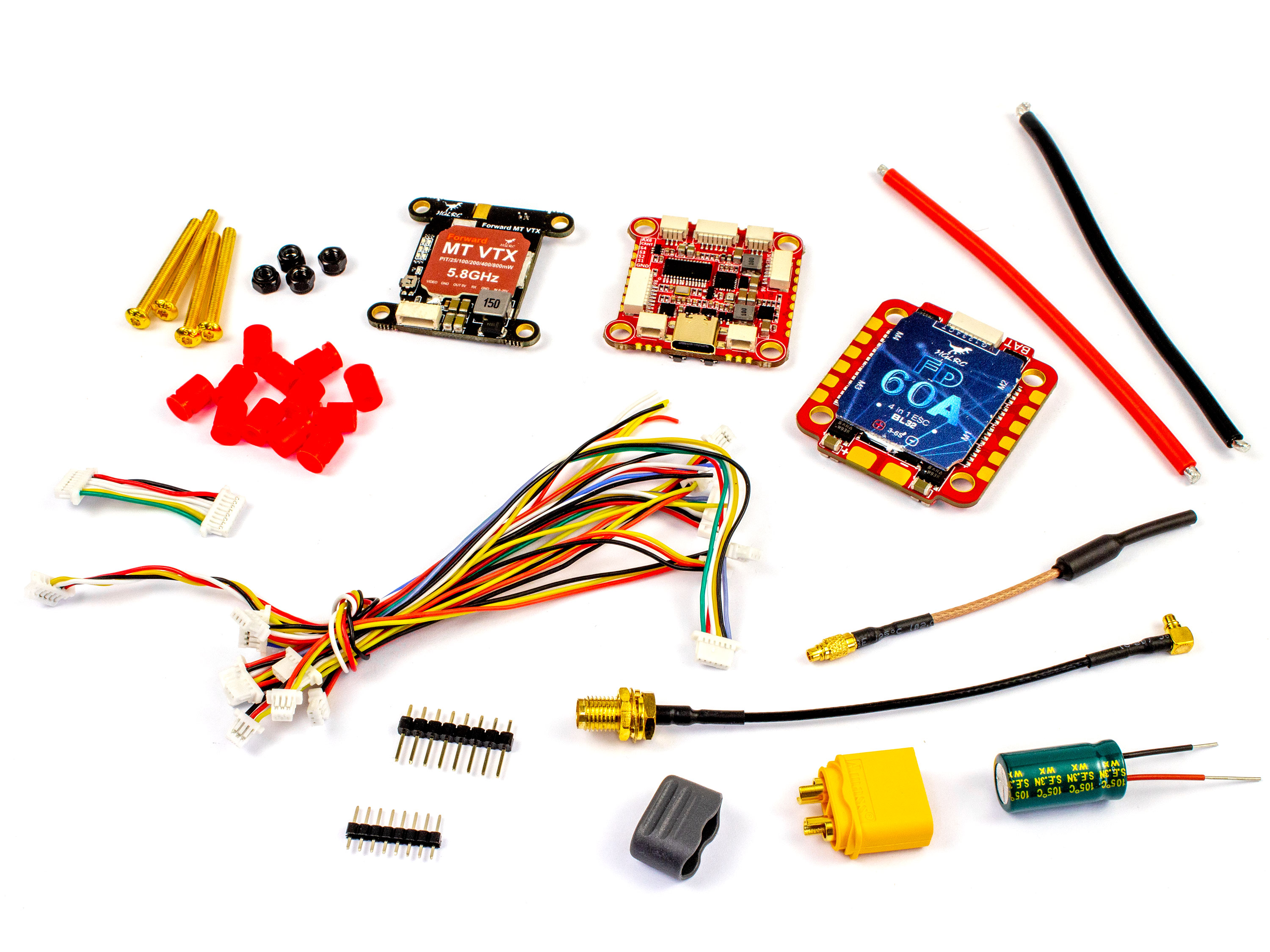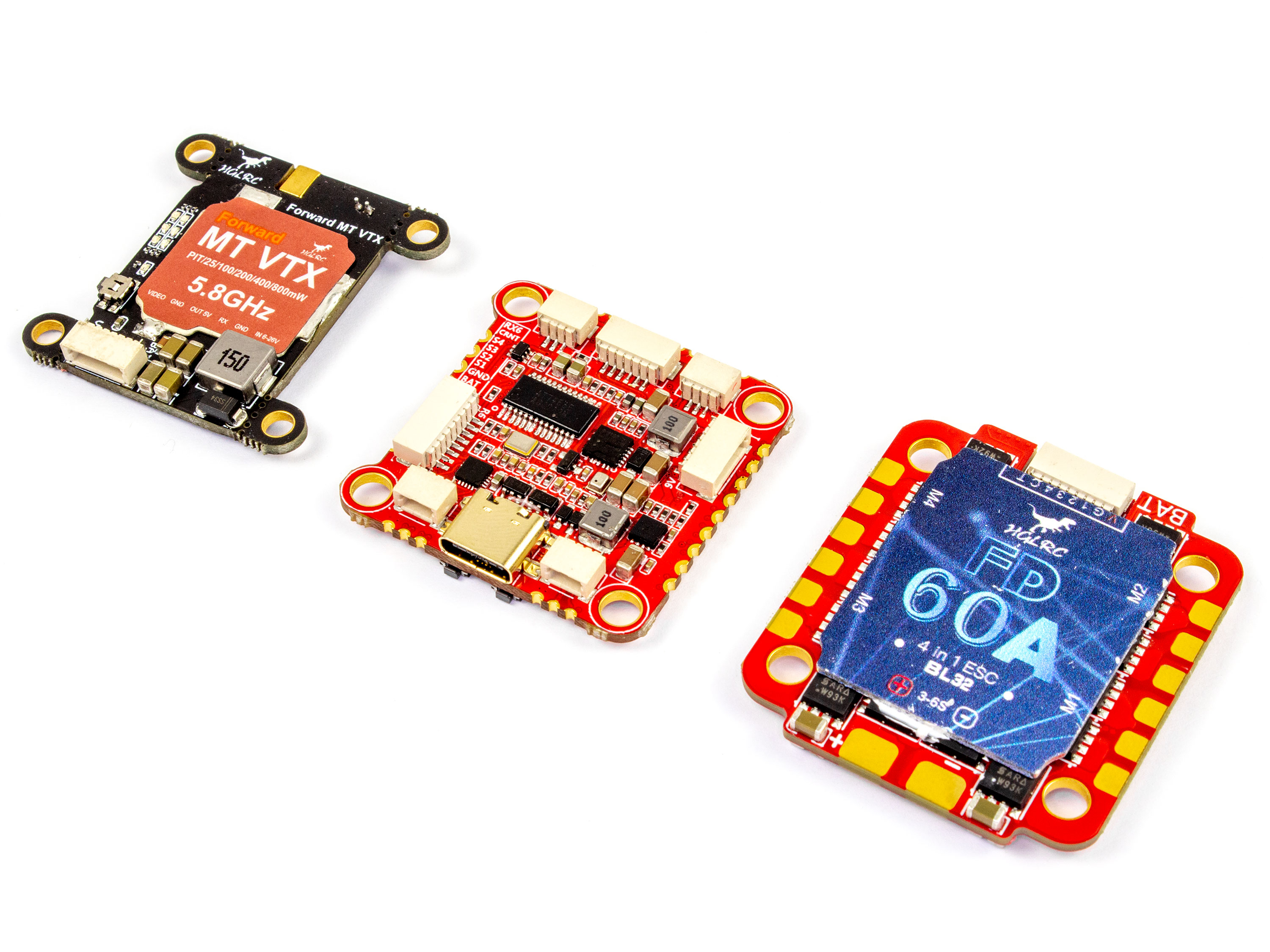 HGLRC Combo - це набір з трьох плат, який включає в себе польотний контролер F722, потужний відеопередавач 800мВ та регулятор 4в1 60А. Форм фактор плат надає можливість об'єднати їх разом (монтажні отвори 30.5мм). Особливості: - Повна сумісність та підтримка модуля DJI Air Unit;