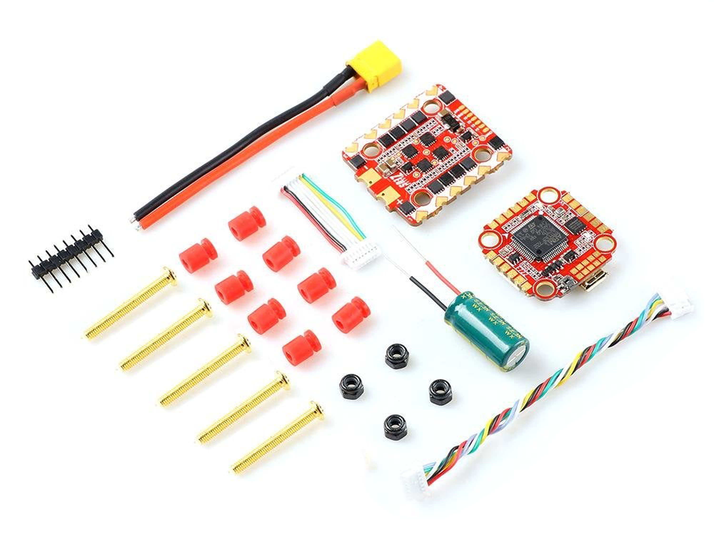 HGLRC Zeus F728 - це набір з двох плат, який включає в себе плату польотного контролера HGLRC Zeus F722 Mini з підтримкою роботи модуля DJI Air Unit та плату регуляторів 4в1 HGLRC Zeus 28A. Навідміну від звичайної версії польотного контролера HGLRC DJI Zeus F722, міні версія виконана в меншому форм-факторі з монтажними отворами (20х20мм), але функціонал при цьому залишився таким самим. Добавлена підтримка радіоприймачів FrSky XM+ та TBS Crossfire Nano. Набір додатково комплектується конденсатором Sanyo 35В для згладжування пульсацій напруги по живленню. Особливості: - Підтримка приймачів: SBUS, IBUS, DSMX, CRSF (порт UART1);