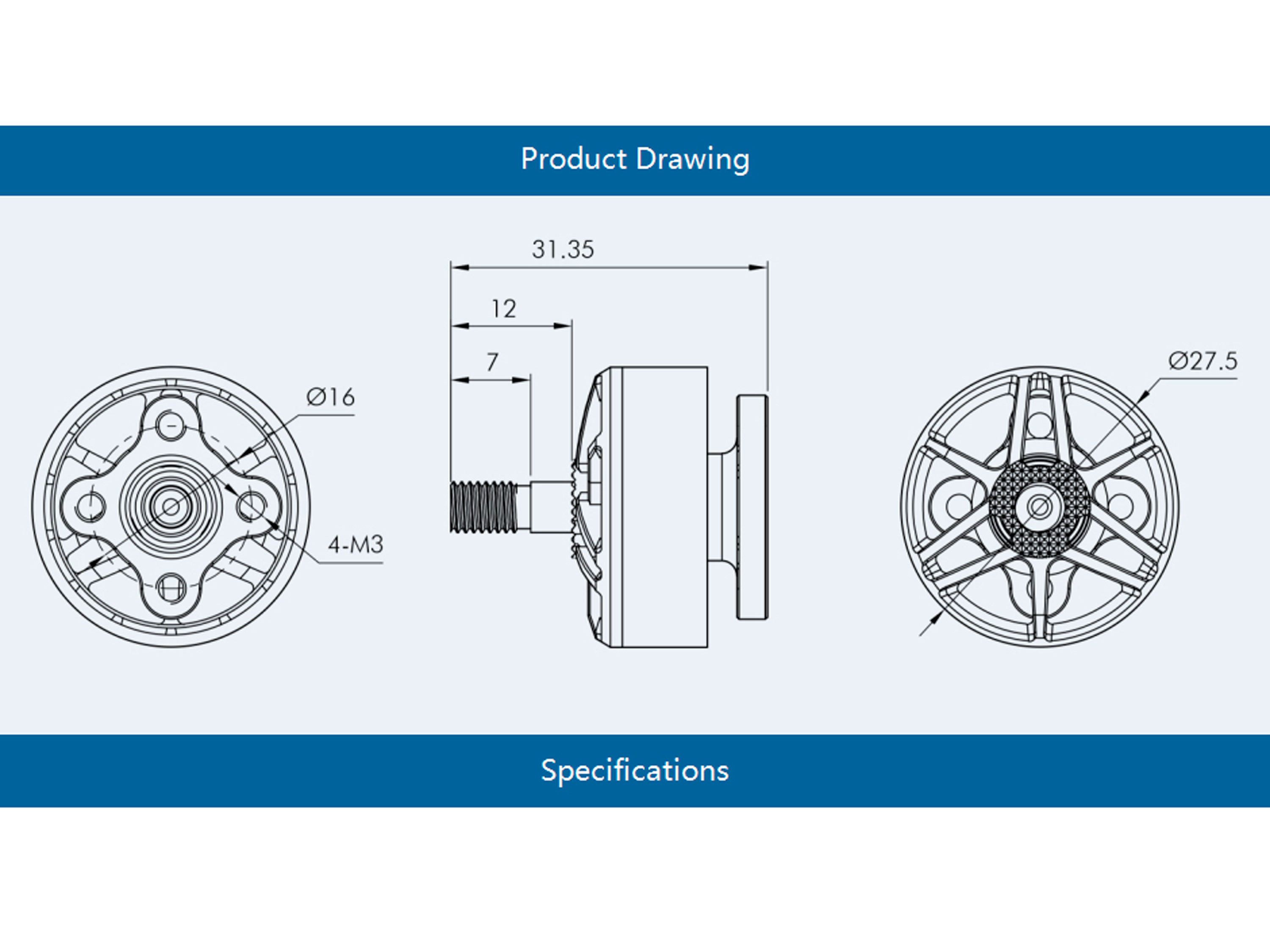 - Відстань між отворами кріплення: 16х16мм (M3);