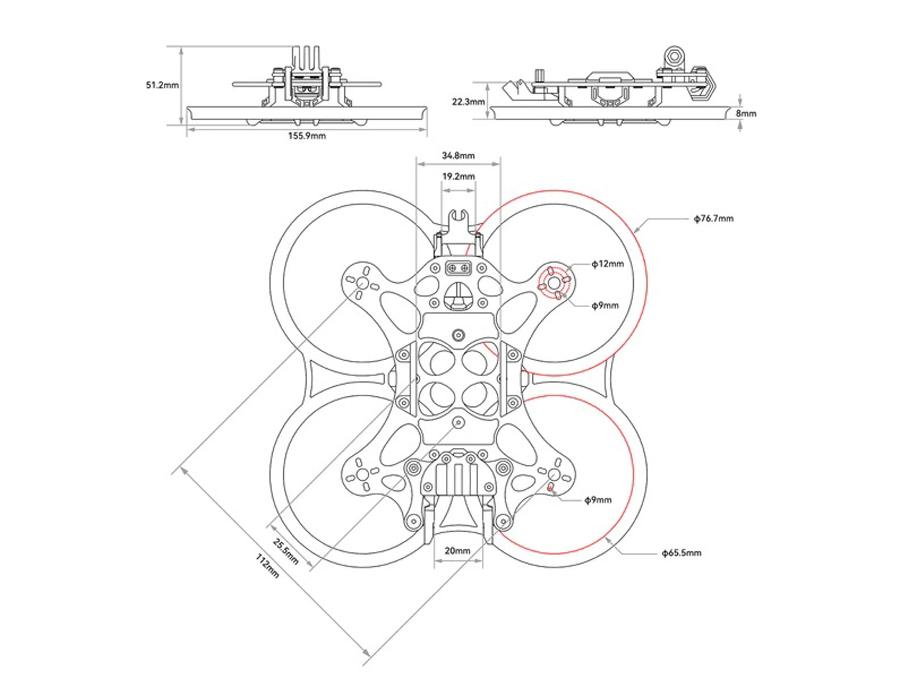 Основа рами BetaFPV Pavo25 V2. Технічні характеристики: