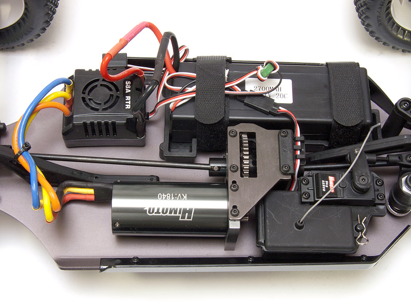 Шасси в моделях Himoto E8 хорошо сбалансировано и усилено металлическими деталями. Главная пара шестерен - металлическая. Мощные амортизаторы, качественные дифференциалы, шины со специальным протектором и сильная рулевая машинка обеспечивают абсолютный контроль над моделью на любой местности. Влагозащищенная электроника не боится ни воды ни грязи, как и положено настоящим внедорожникам. Сердце машин - мощная бесколлекторная система для класса 1/8, которая питается от Li-Pol аккумулятора 11.1В и позволяет разгонять их до 80 км/ч.