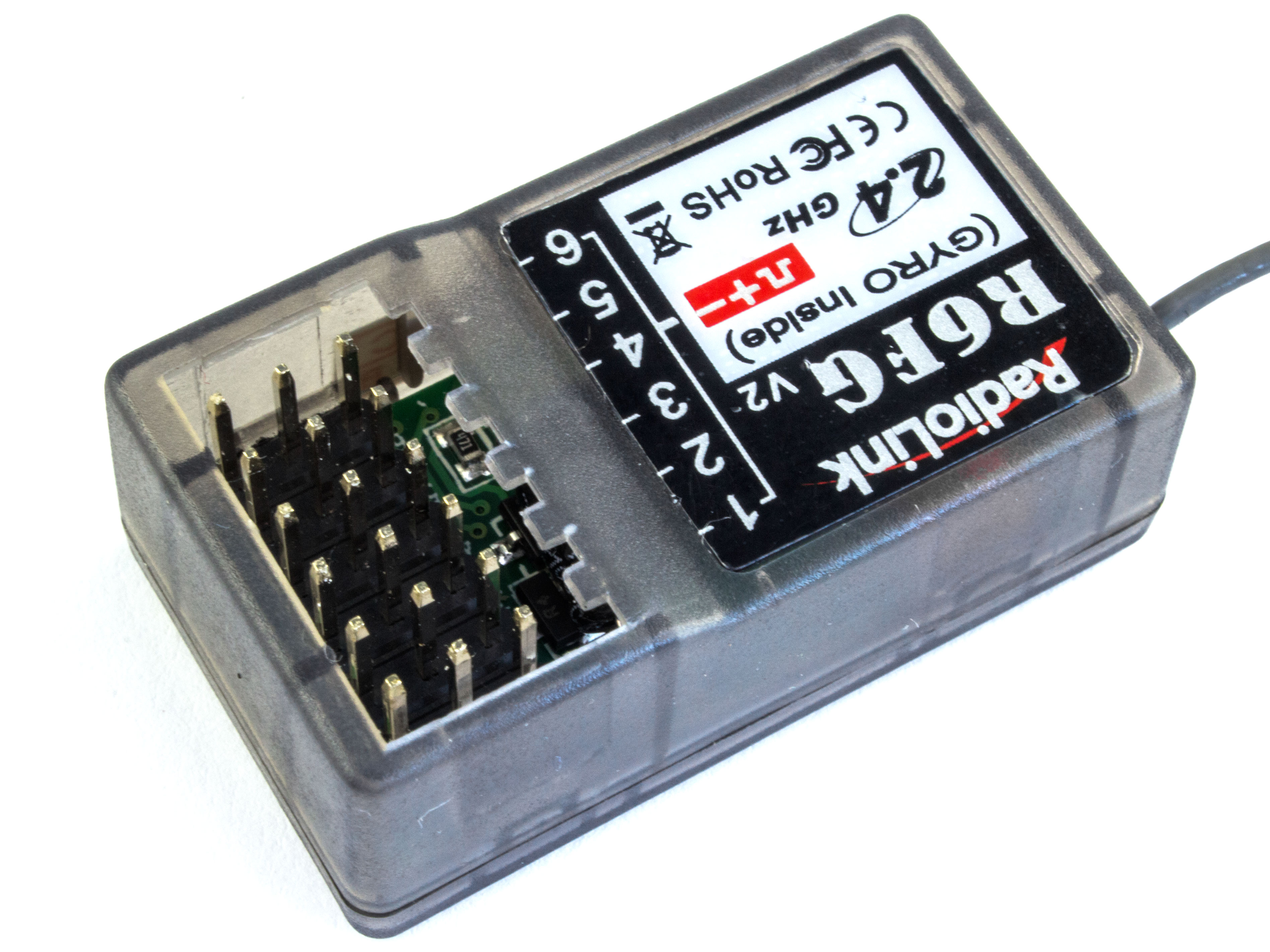 Приемник на 6 каналов снабжен гироскопом, поддерживает высоковольтные сервоприводы и используется на авто- и судомоделях. Приемник совместим с пистолетными аппаратурами Radiolink: на 6 каналов RC6GS, на 4 каналы RC4GS, RC4G, RC3S и классическим передатчиком на 8 каналов T8FB.
