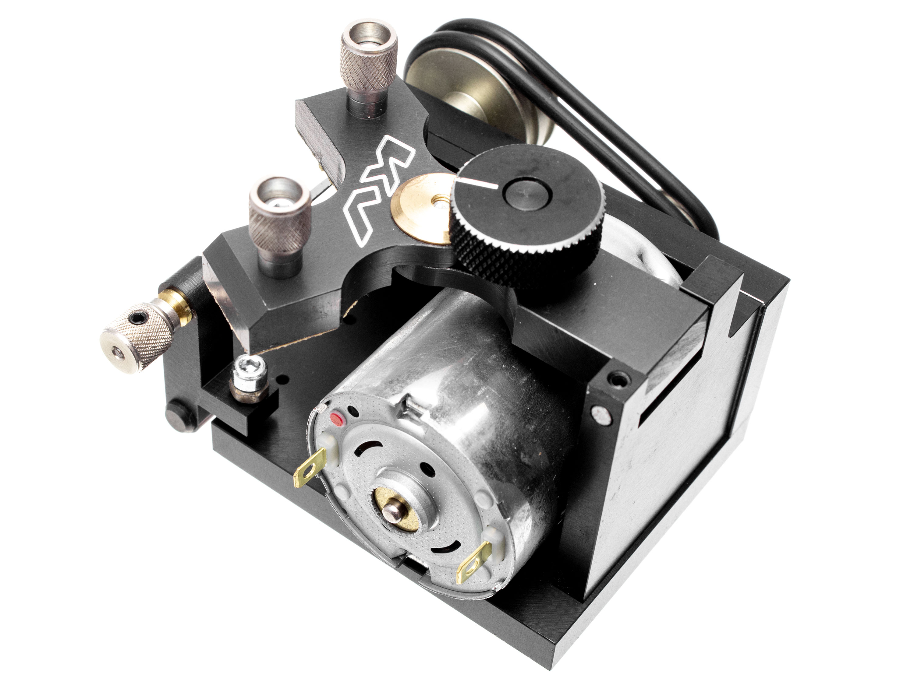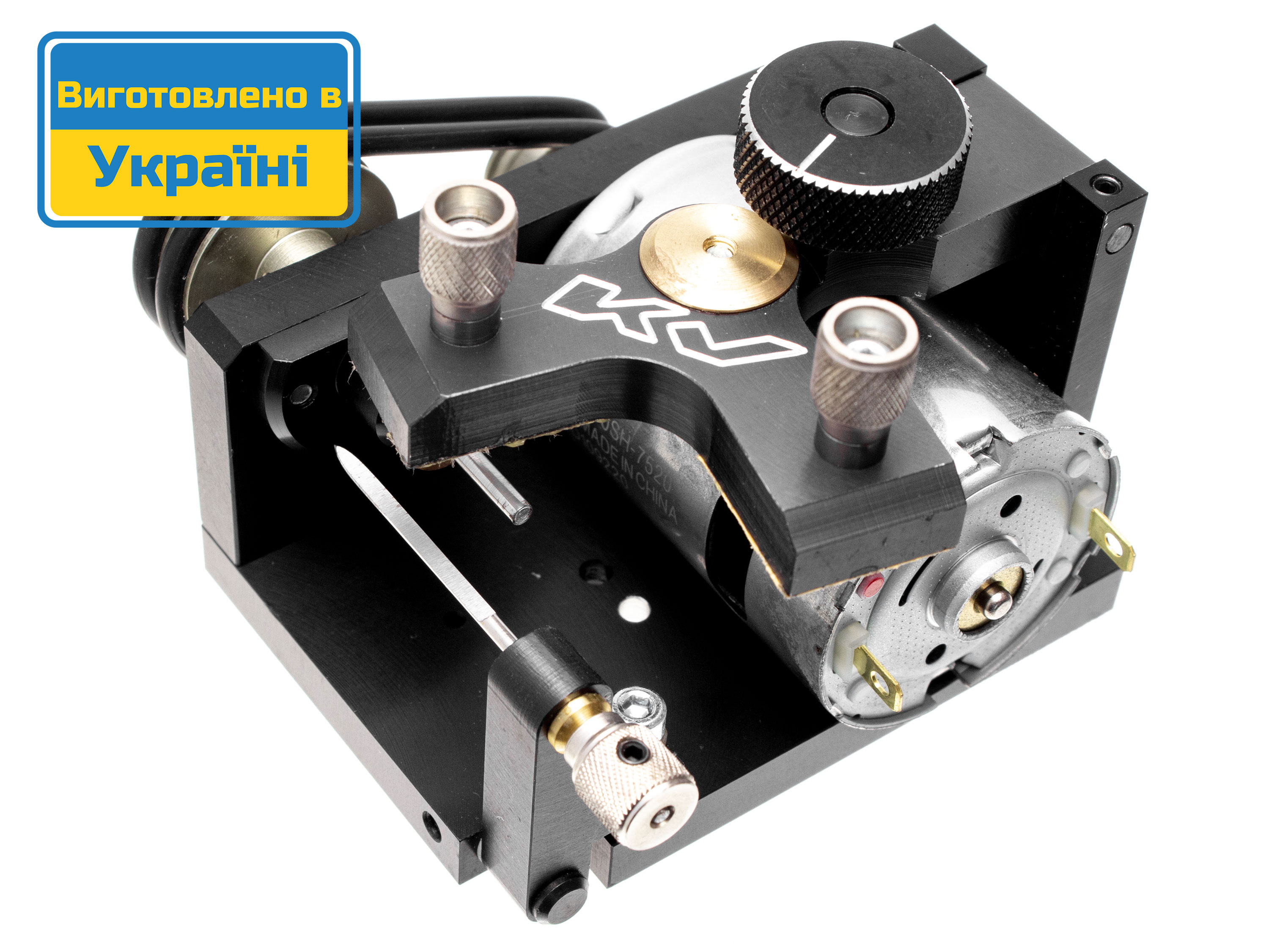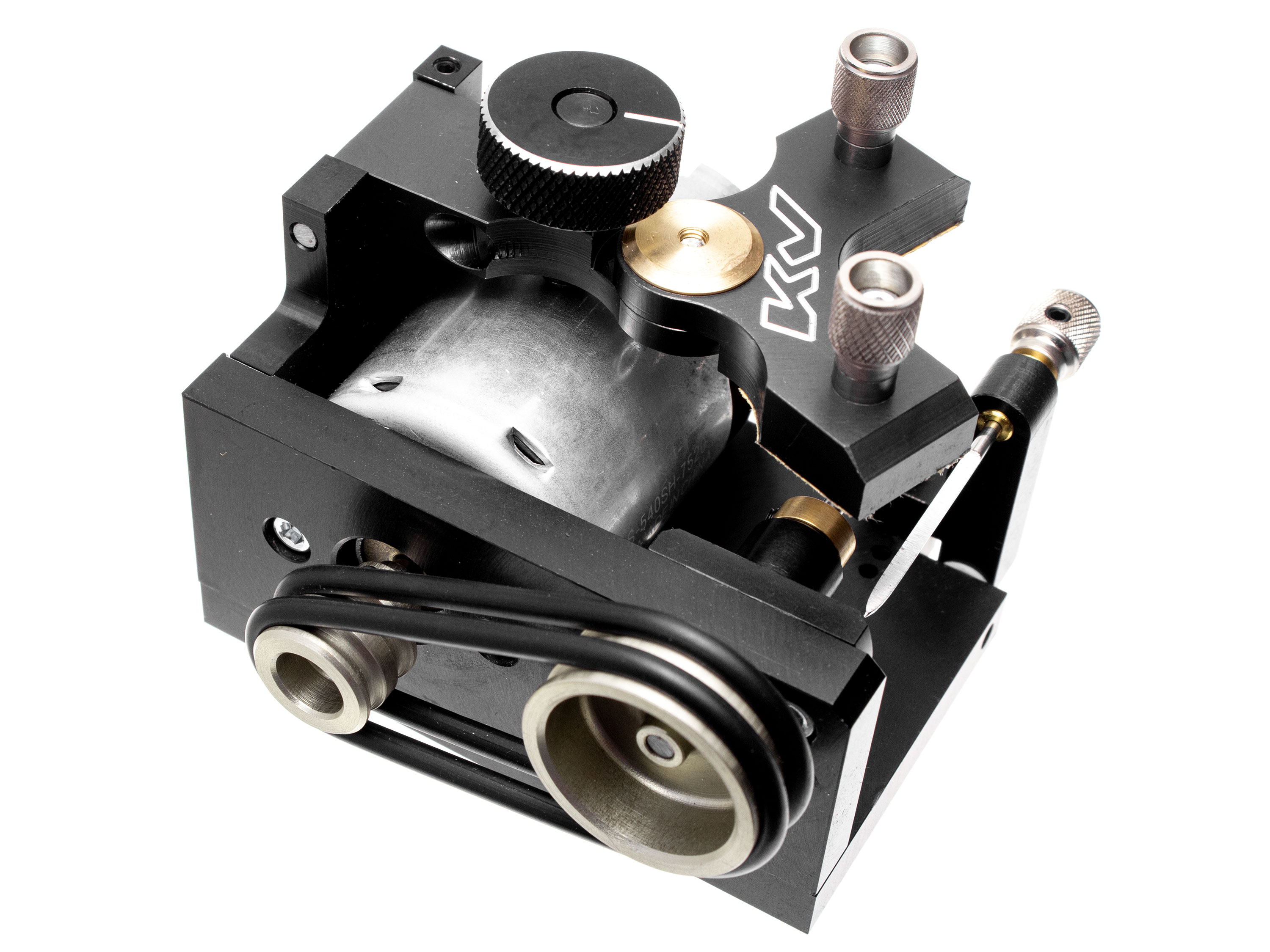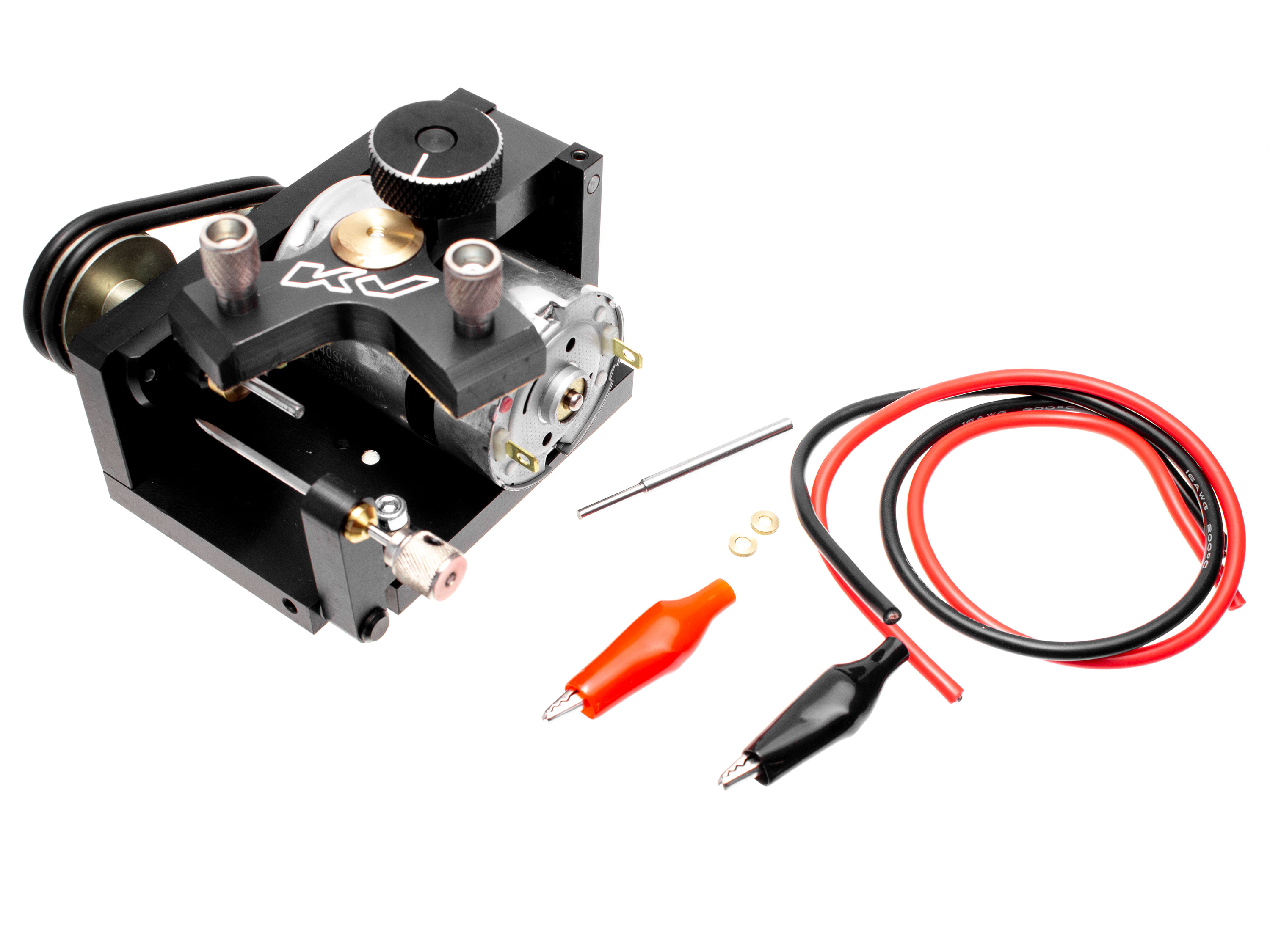 Станок для обработки заготовок задних колес трассовых автомоделей. Данный станок от украинского производителя KV, один из самых популярных среди спортсменов мира. Его применяют для шлифования заготовок задних колес до нужного диаметра. В комплект дополнительно входит ось диаметром 2мм. Технические характеристики: - Рабочее напряжение: 3-12В;