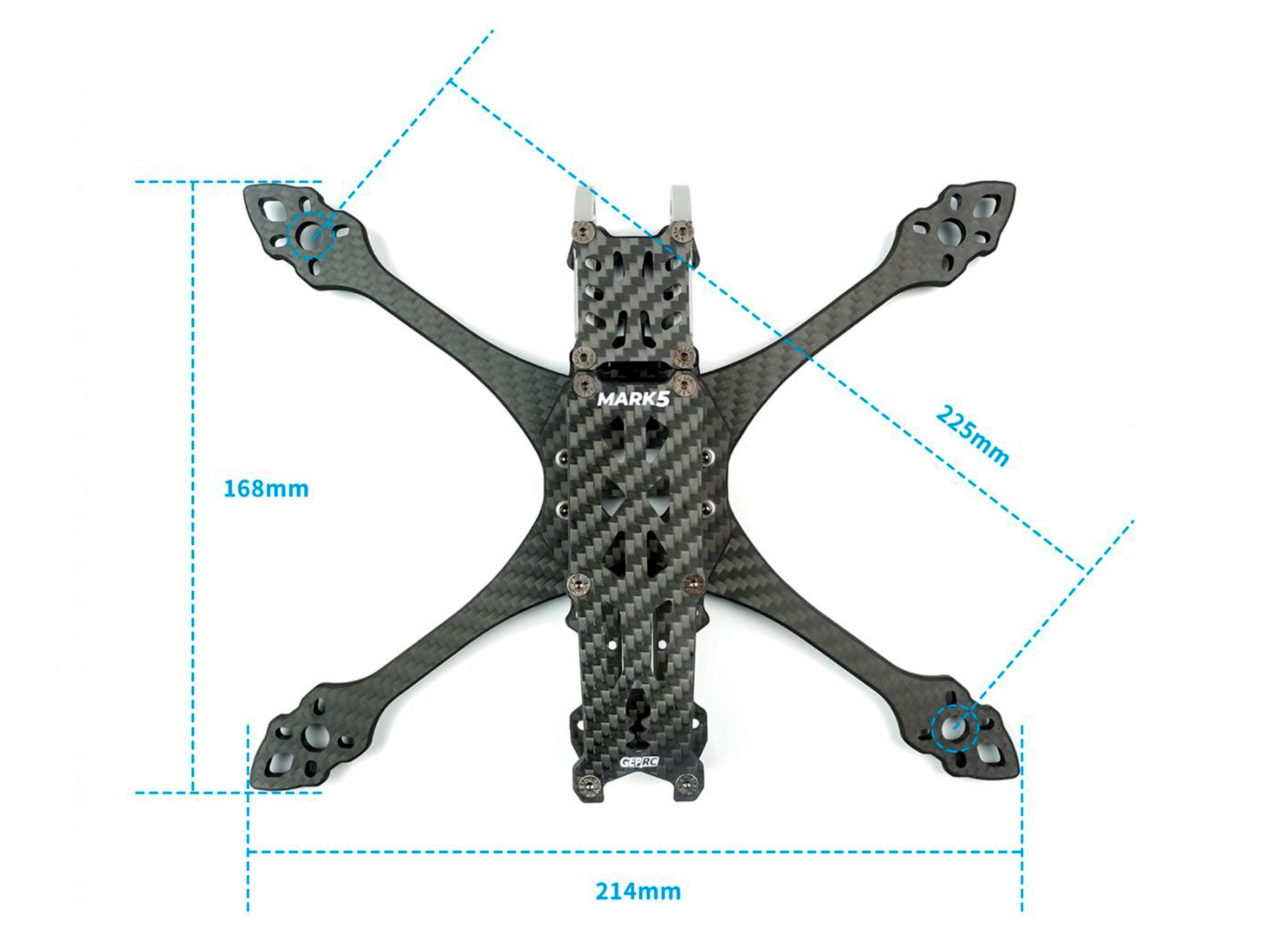Технические характеристики: - Расстояние по диагонали между осями двигателей: 225мм;