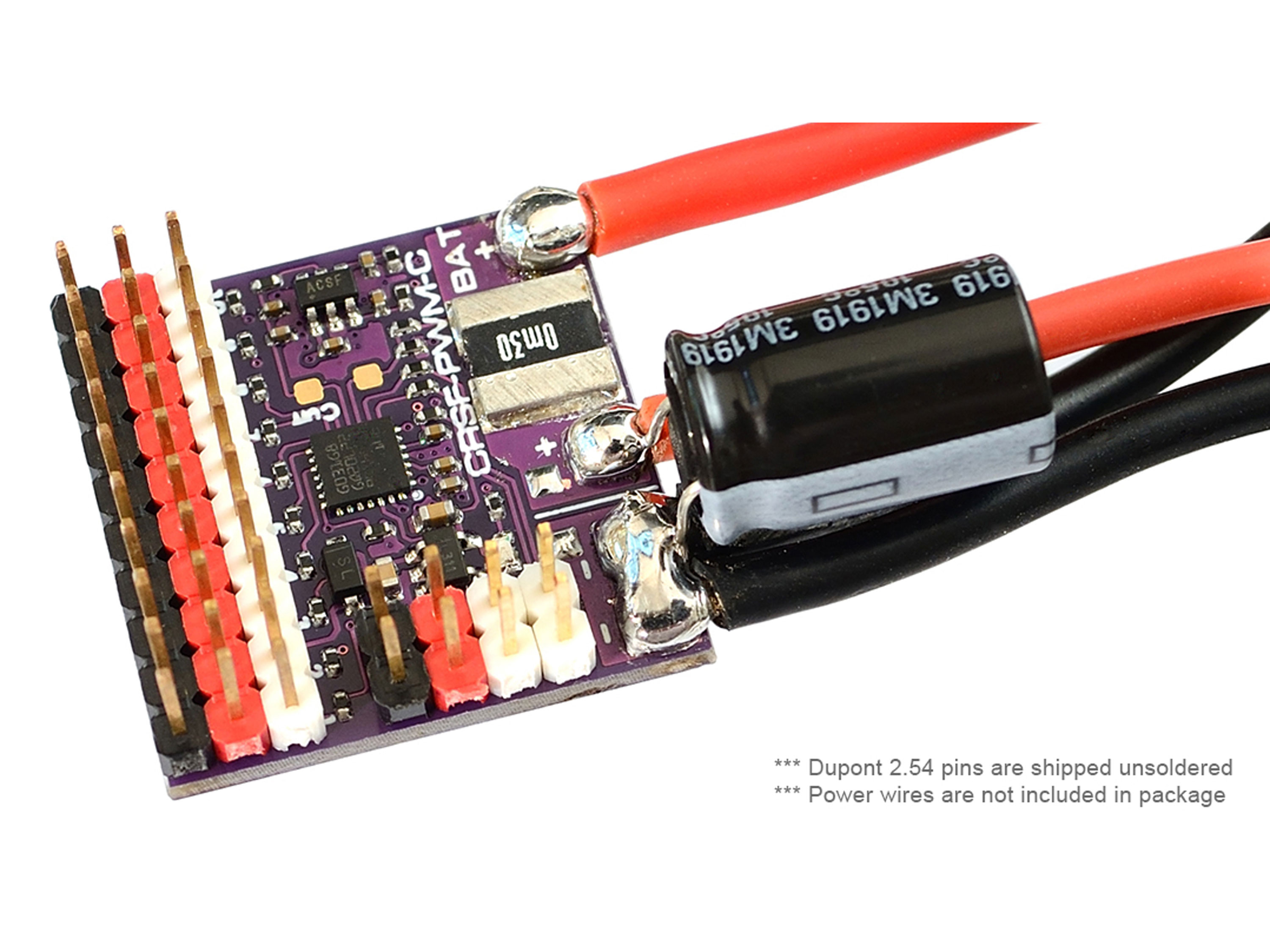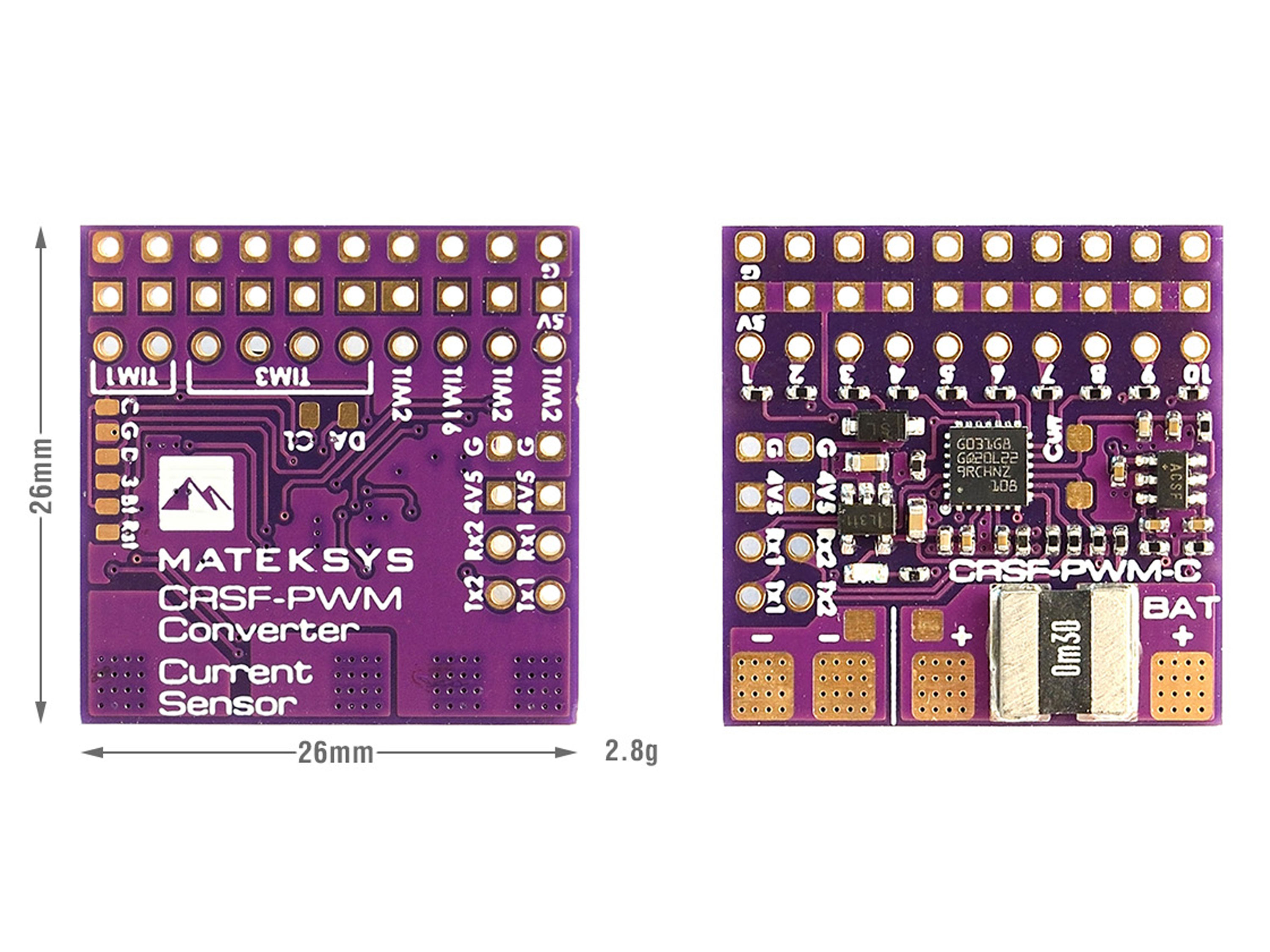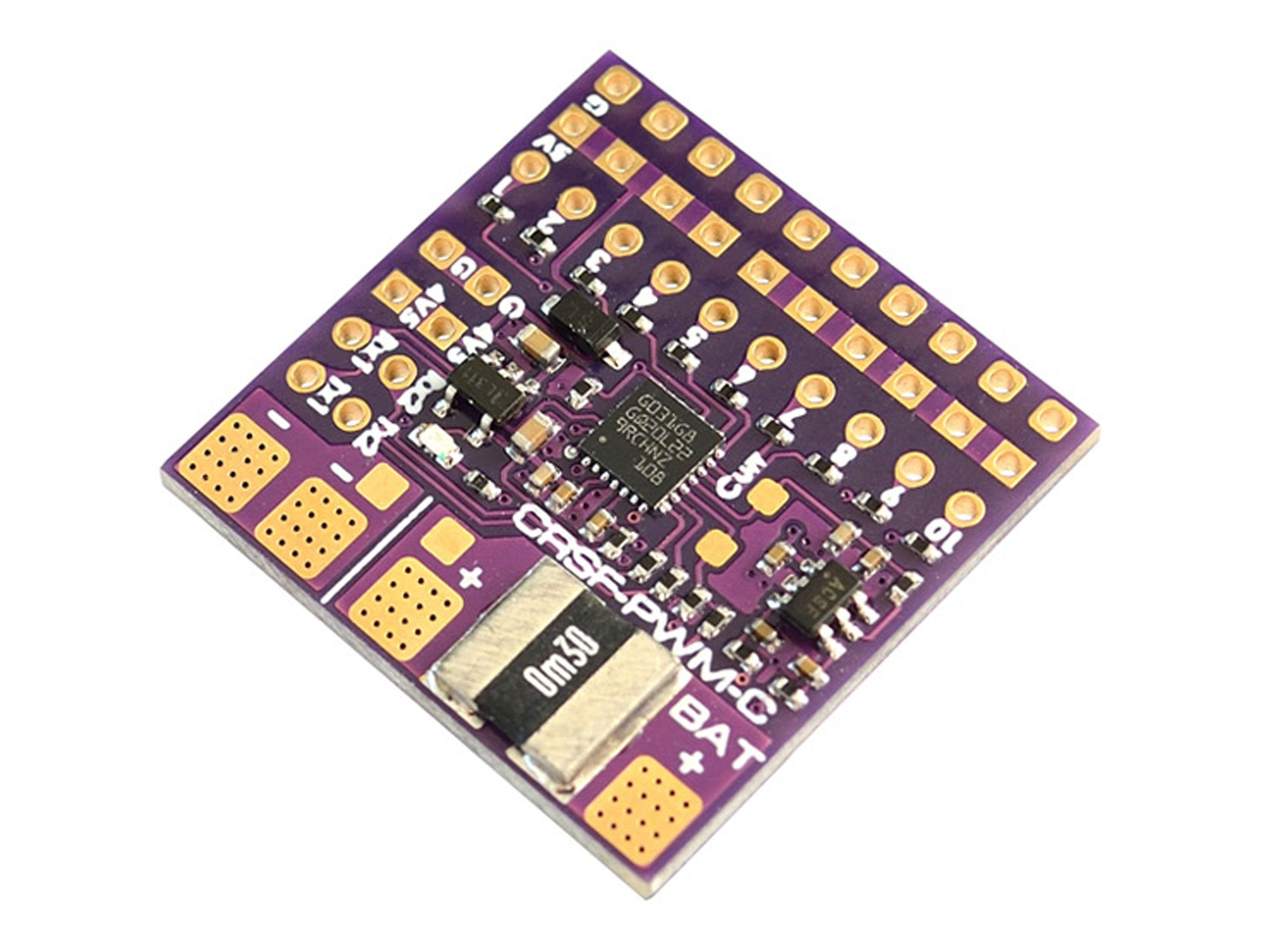 10-канальный конвертер Matek CRSF-PWM предназначен для приема сигнала CRSF (протокол Crossfire) и преобразования его в PWM сигнал, для возможности подключения к 10 устройствам, например, сервомприводов, регулятора скорости и других. Кроме того, конвертер имеет настраиваемый частотный PWM выход, вход внешнего датчика тока и Failsafe. На плате также размещены два порта UART для подключения приемника и GPS, который затем передает координаты вместе с телеметрией Crossfire. Плата Matek не имеет встроенного источника питания, поэтому рассчитана на внешнее питание 5В (например от регулятора скорости или внешнего BEC). Особенности: