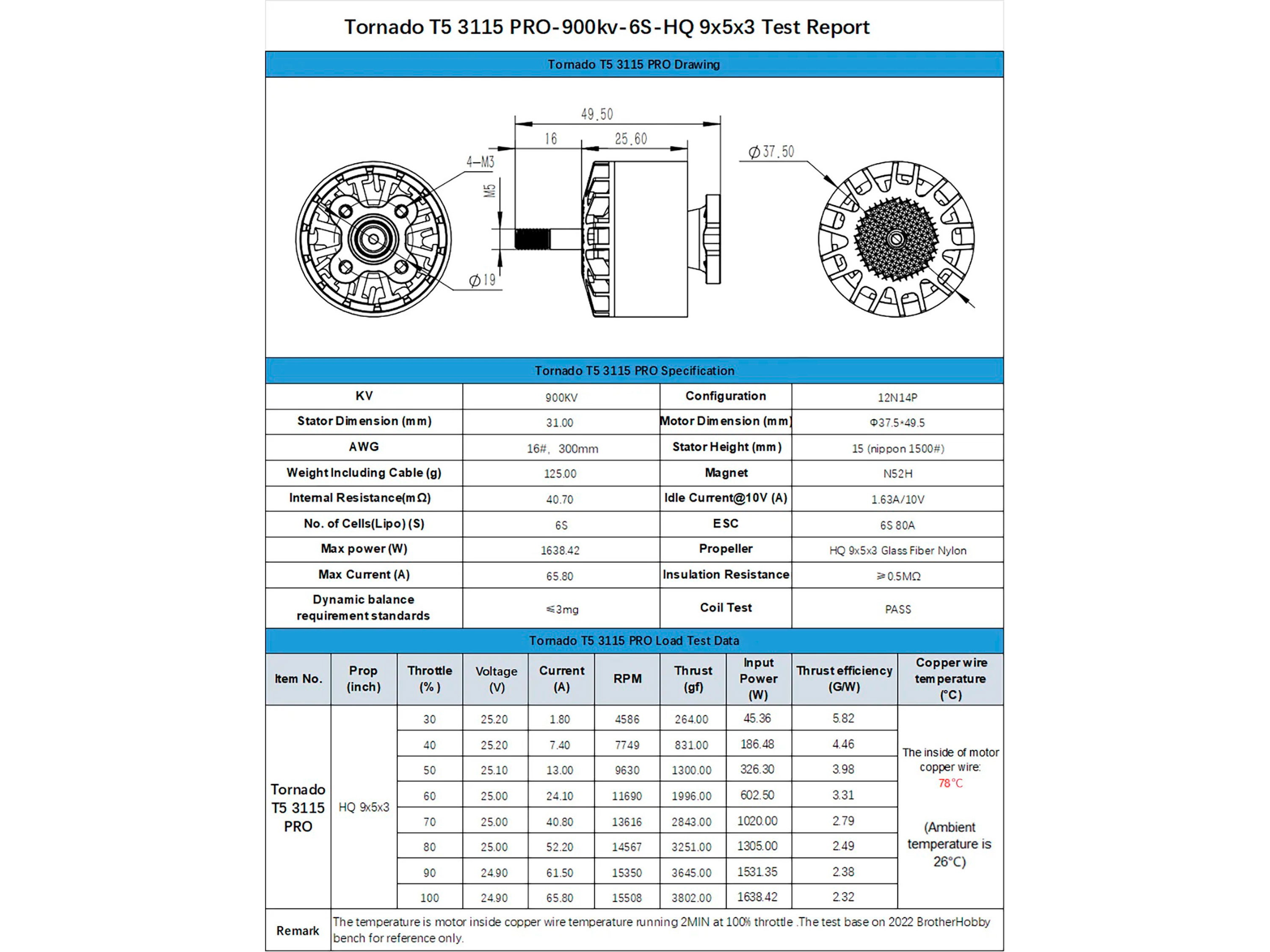 - Максимальная тяга: 3802г;