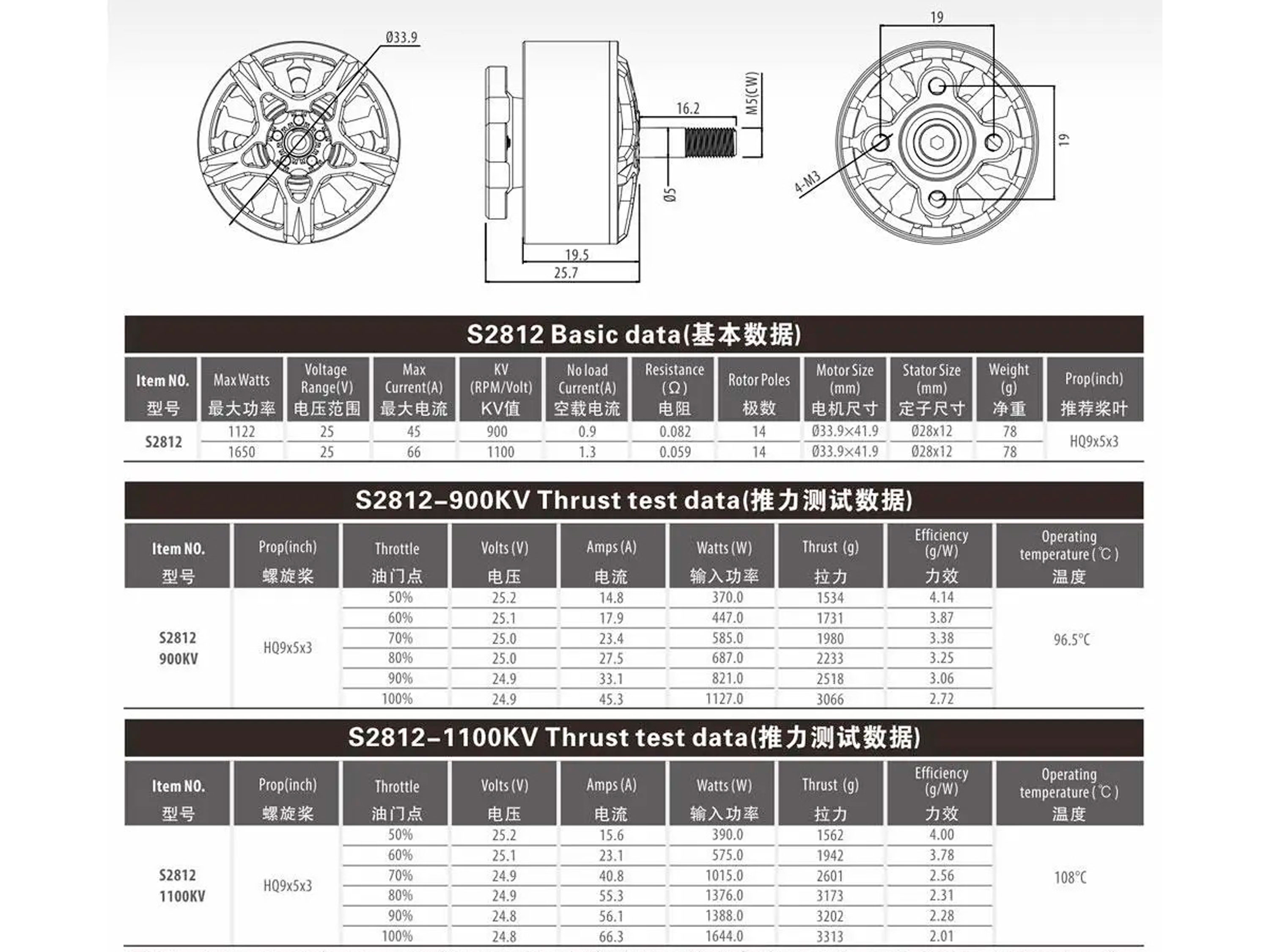 Технические характеристики: - KV: 900 об/Вольт;