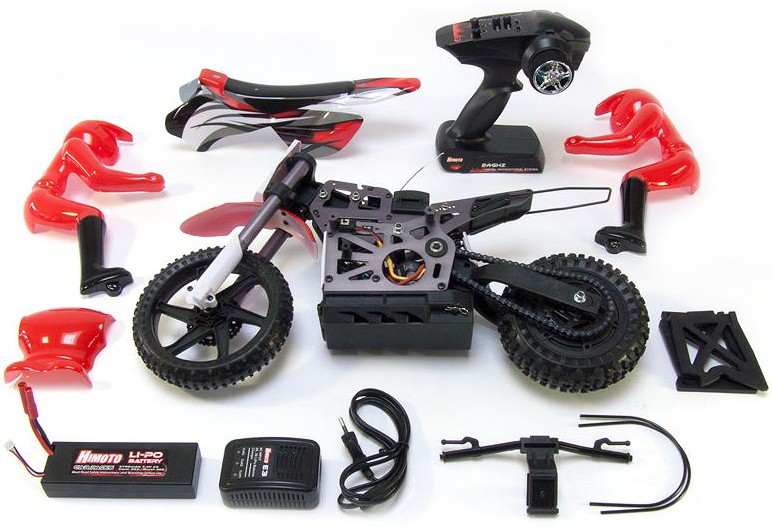 Модель мотоцикла Himoto Burstout MX400 добре збалансована і укріплена металевими деталями. Алюмінієва рама, справжній сталевий ланцюг і закритий вологозахищений бокс для електроніки забезпечують надійність і ударостійкість. Запатентована система гіроскопів, потужні амортизатори і сильна рульова машинка забезпечують абсолютну стійкість на будь-якій місцевості . Серце мотоцикла - потужний електродвигун 550-го класу, який живиться від Li-Pol акумулятора 7.4В і дозволяє розганятися до 40 км / год.