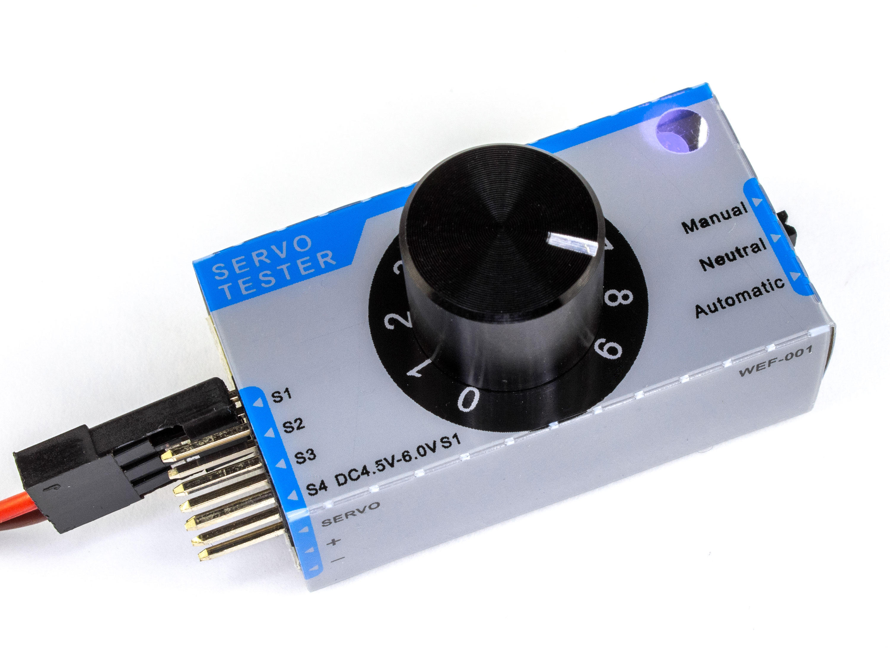 Для вибору режиму роботи сервотестера є перемикач, який знаходиться збоку. Технічні характеристики: - Вхідна напруга: 4.5-6В;