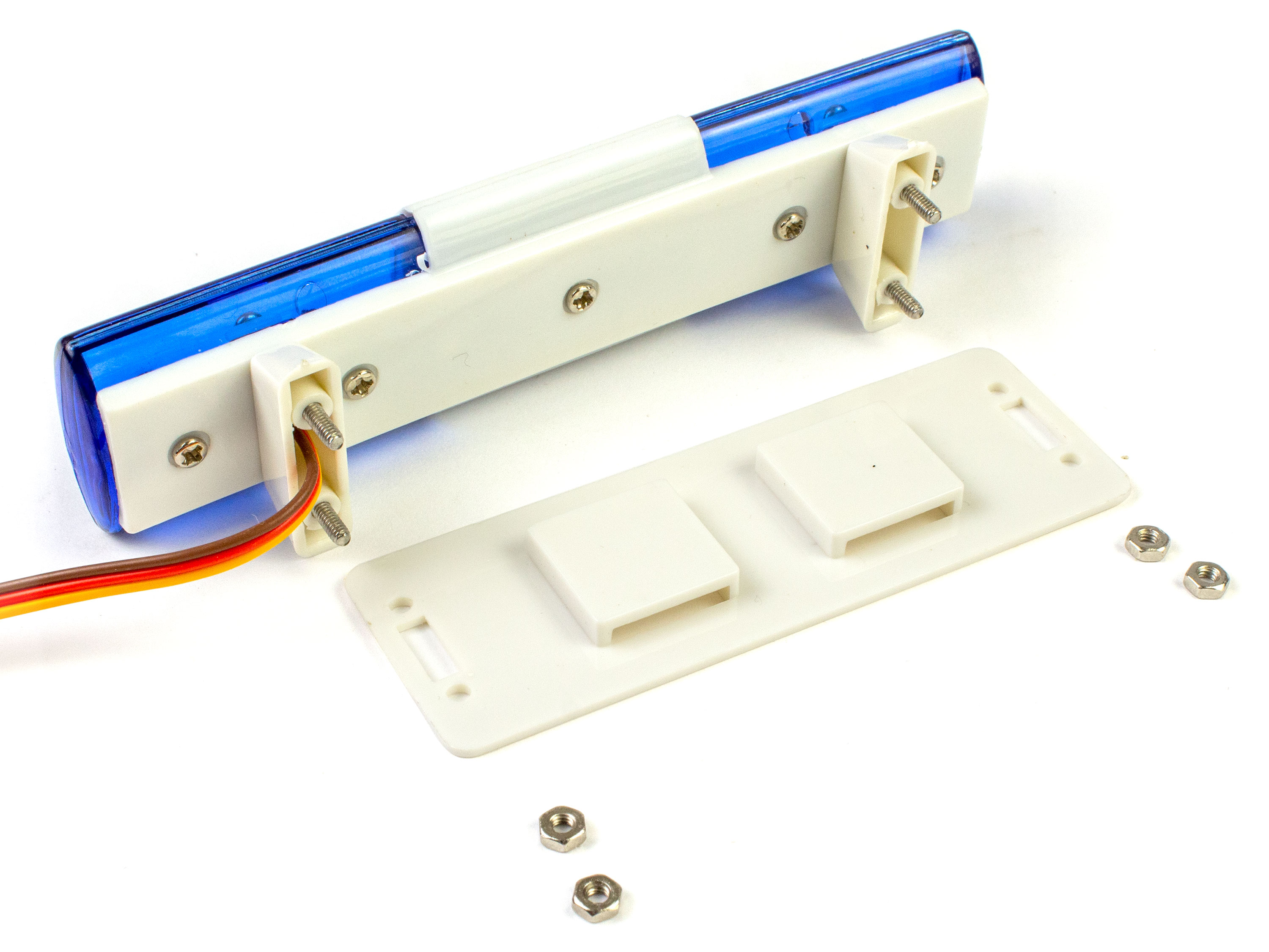 Ця світлодіодна мигалка має 7 циклічних режимів роботи і підключається JR роз'ємом напряму у вільний канал приймача. Режими роботи перемикаються за допомогою радіопередавача. Технічні характеристики: