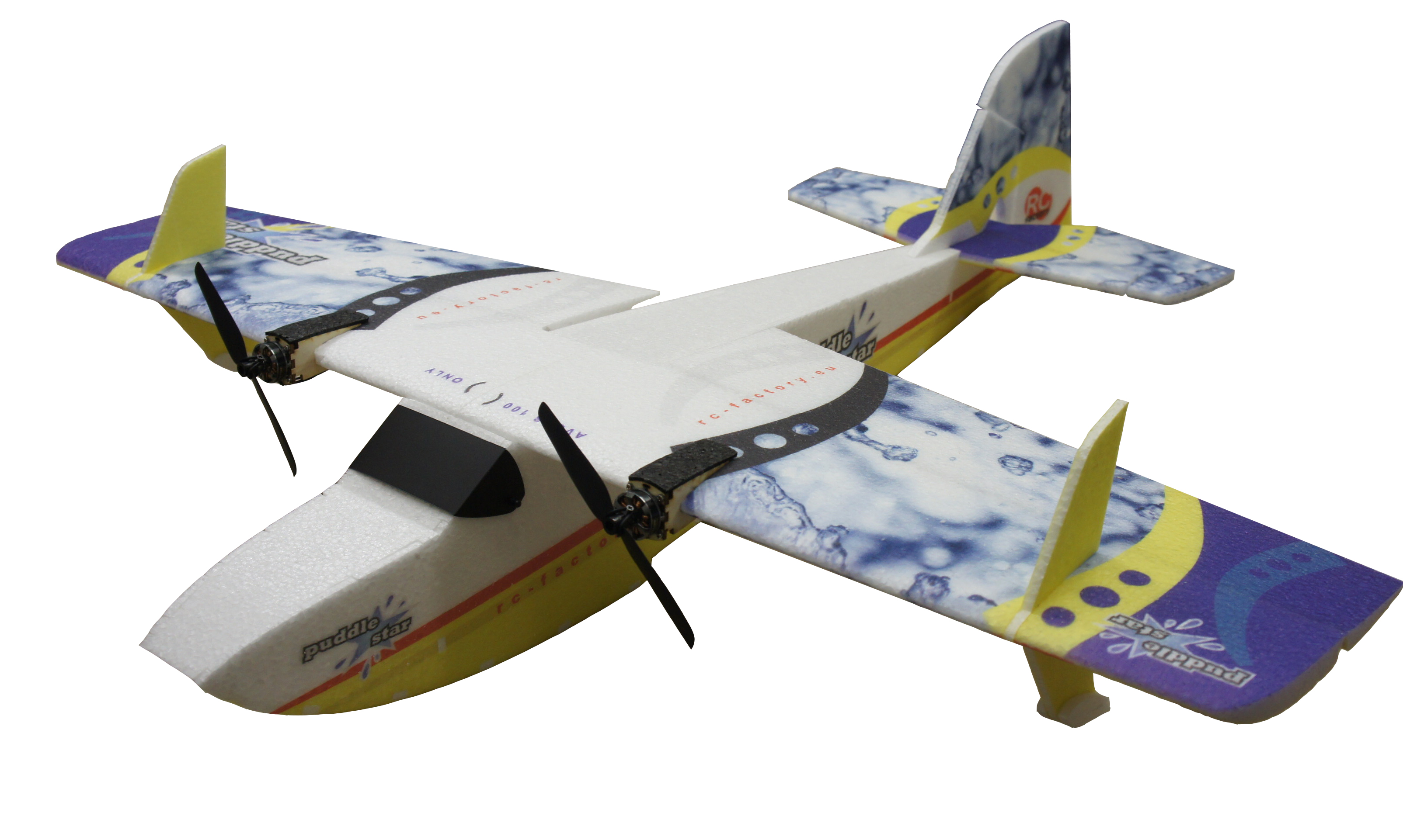 Акробатичний гідроплан Puddle Star є однією з найбільш маневрених авіамоделей, які виготовляються повністю з EPP. Завдяки радіокерованій авіамоделі ви можете об'єднати 2 середовища: повітря і воду. Великі співвідношення маси та потужності, закрилки дозволяють авіамоделі на радіокеруванні виконувати найрізноманітніші, часом непередбачувані 3D-фігури. Варто відзначити, що радіокерована авіамодель з меншими відхиленнями може стати вашим першим гідропланом, тому що виготовлена з EPP і є стійкою до пошкоджень. Для виконання як злету, так і посадки з/на воду немає необхідності володіти особливими уміннями, потрібно просто керувати обертами валу мотору. Технічні характеристики: