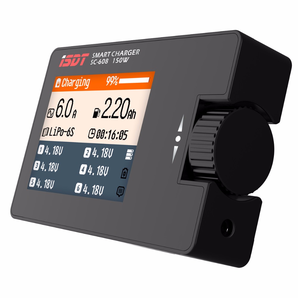 Зарядка iSDT SC-608 з потужністю 150Вт і системами для зарядки, розрядки і зарядки з метою зберігання АКБ володіє простим і доступним кожному інтерфейсом. Легкі доступ до функцій та управління зарядним пристроєм забезпечує останньому високу популярність серед користувачів. Завдяки невеликому розміру зарядка зручна в перенесенні і зберіганні.