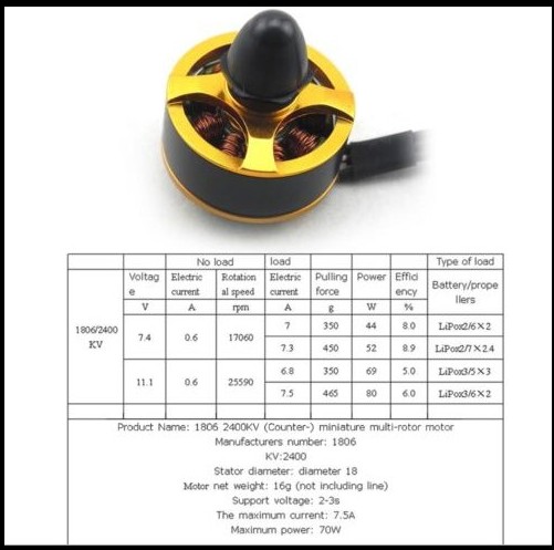 - Оборотів в хвилину: 2400Kv;