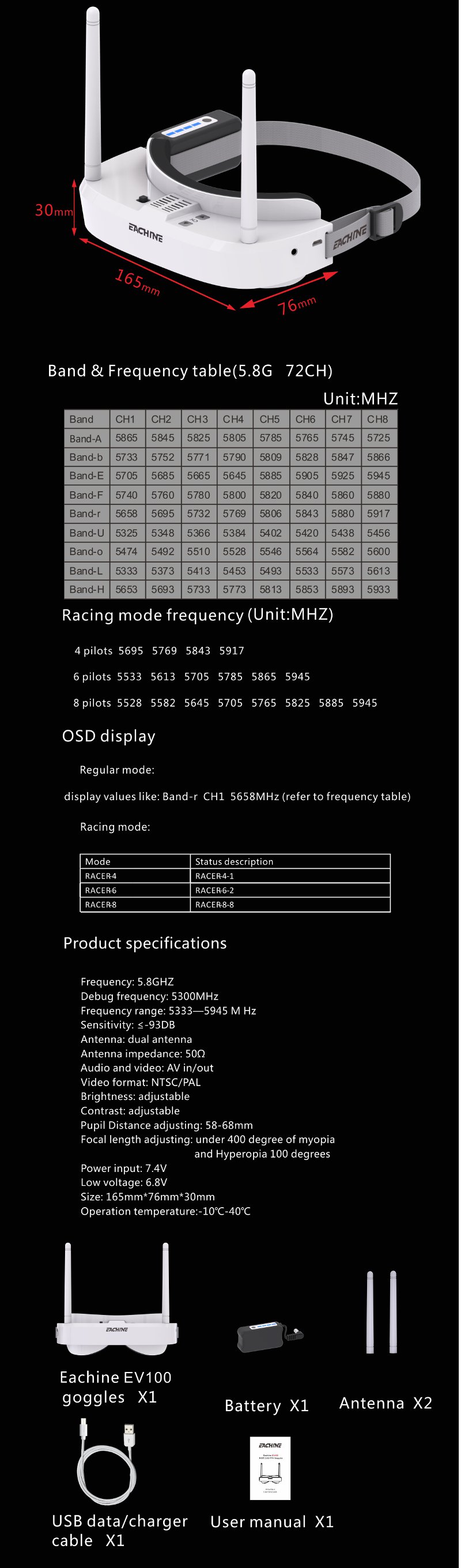 Окуляри Eachine EV100 FPV
