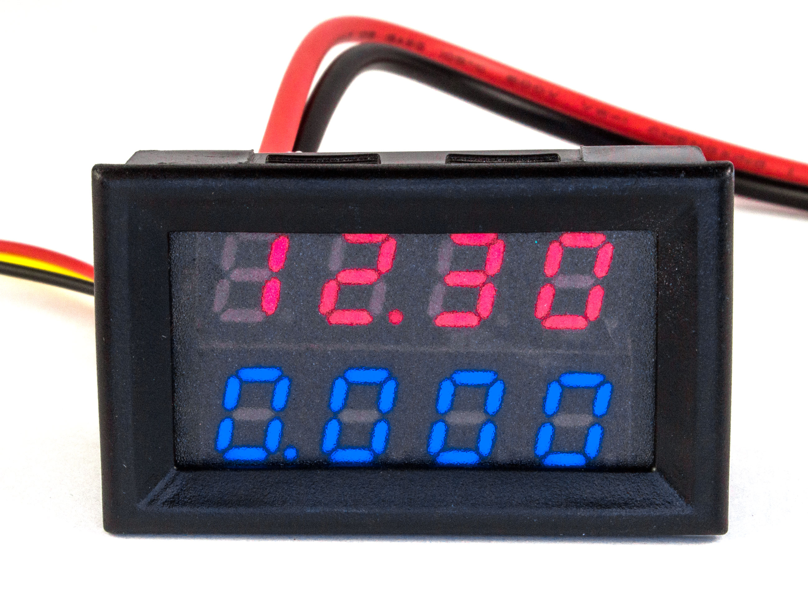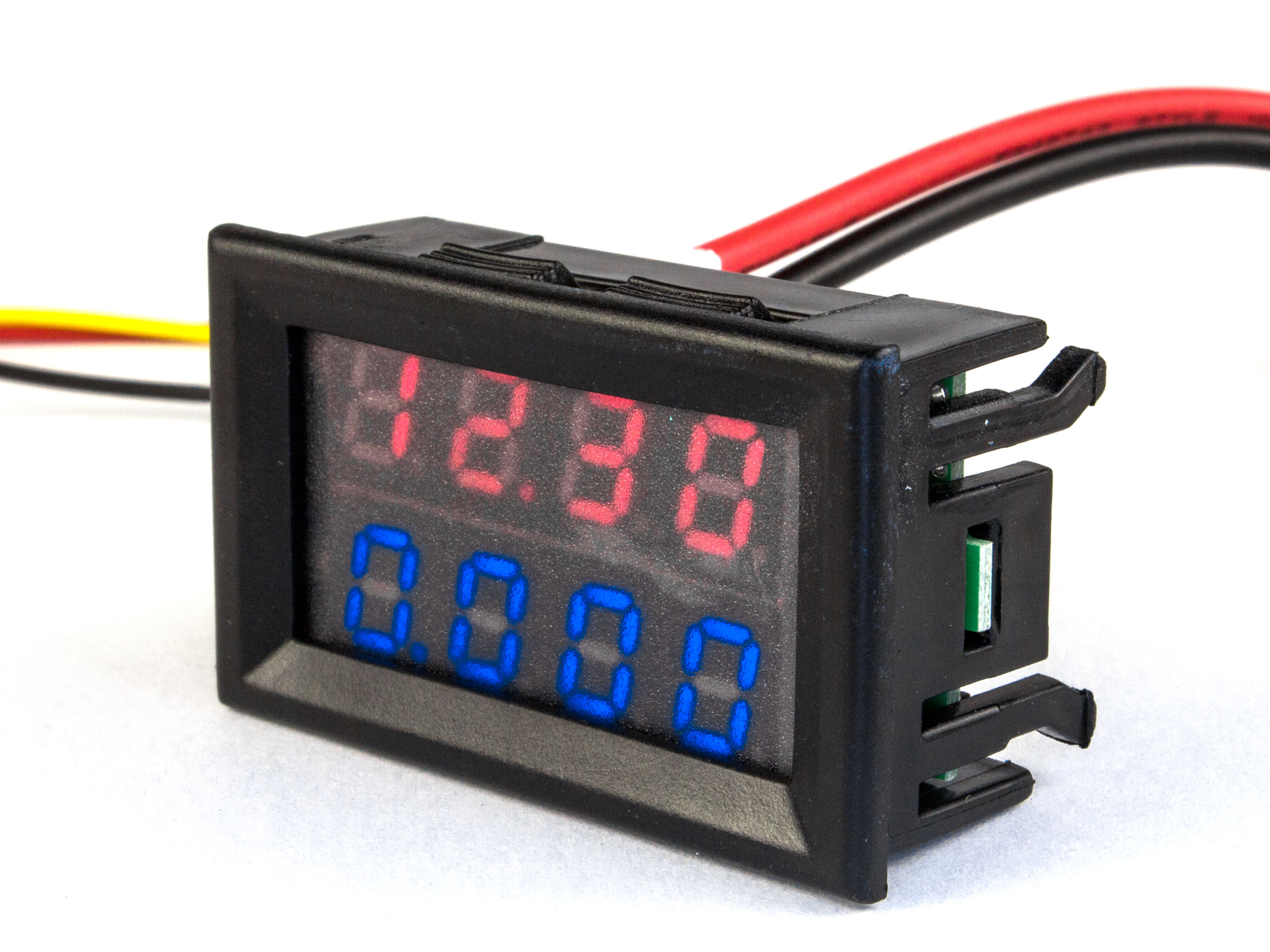 Цифровий амперметр вольтметр служить для вимірювання сили струму і напруги. Вимірювальний прилад ставиться на різну апаратуру, радіокеровані кораблики, електронні вироби і контролери Arduino, транспортні засоби. Великий цифровий індикатор, широкий діапазон виміру струму і напруги (до 10А і до 200В) роблять вимірювальний прилад універсальним. Легку установку цифрового вимірювального приладу забезпечує міцний корпус, обладнаний засувками. Технічні характеристики: - Зовнішнє живлення: 4-28В DC;