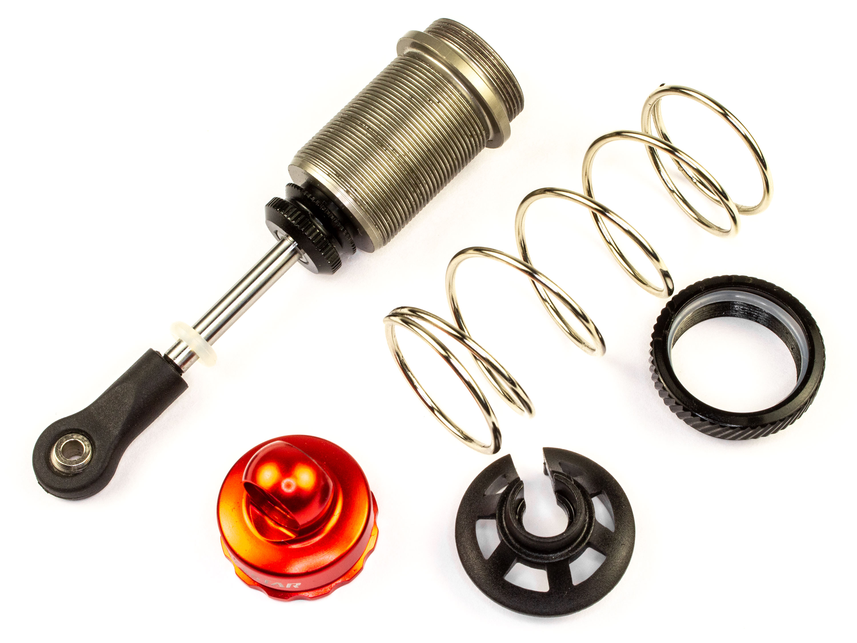 Амортизатори TrackStar виготовляються з обробленого на ЧПУ алюмінієвого сплаву 7075, а шток та пружина виготовлені з загартованої сталі, завдяки чому Ви можете бути впевнені у їхній продуктивності та довговічності. Для користування, амортизатори потрібно наповнити оливою. Технічні характеристики: - Довжина (габаритна) амортизатора: 90мм;