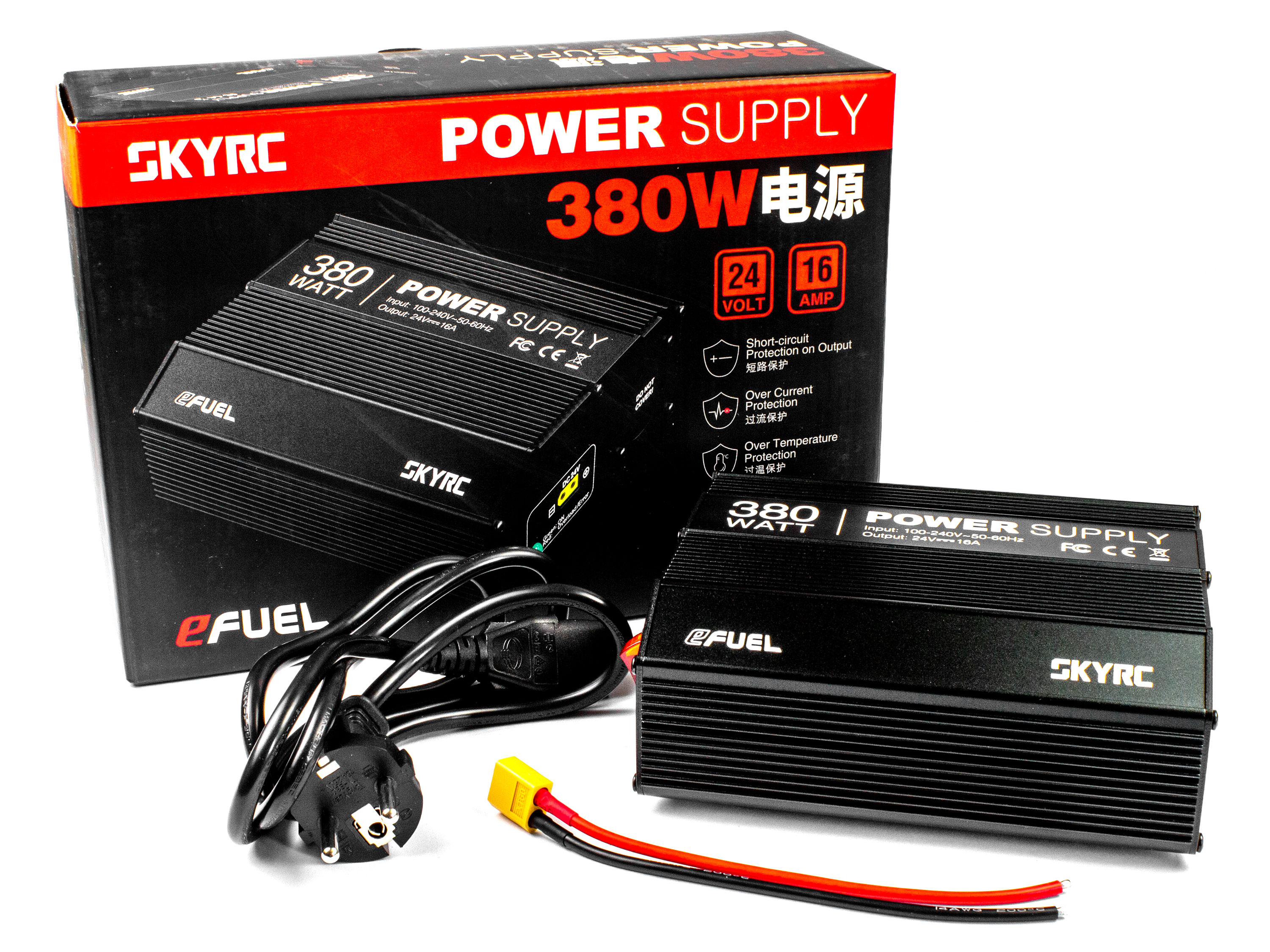 Блок живлення SkyRC eFuel призначений для живлення пристроїв з напругою 24В. Він здатний перетворити 100-240В змінної напруги в 24В постійної напруги. Особливості: - Роз'єм XT60 для підключення пристроїв;