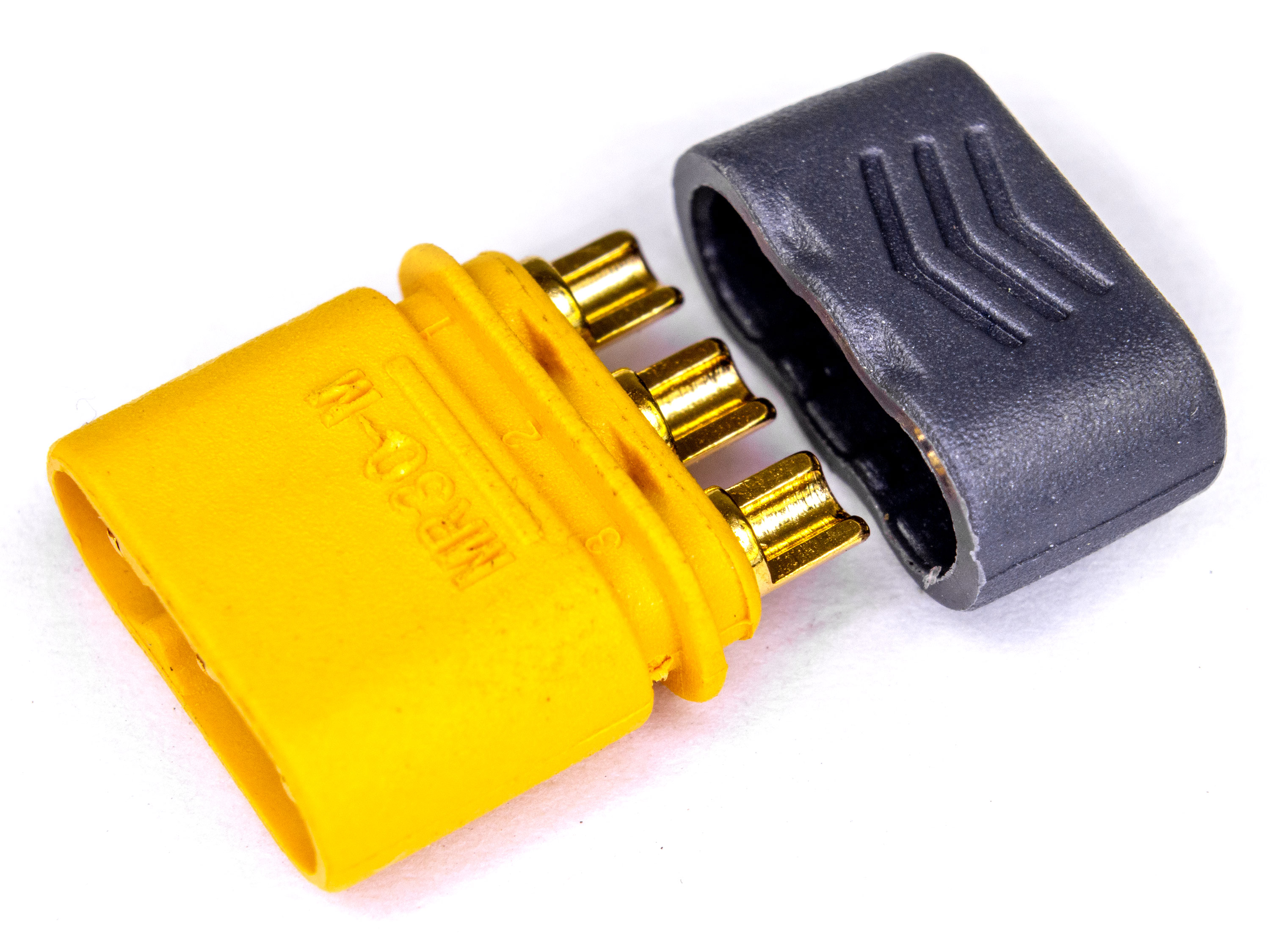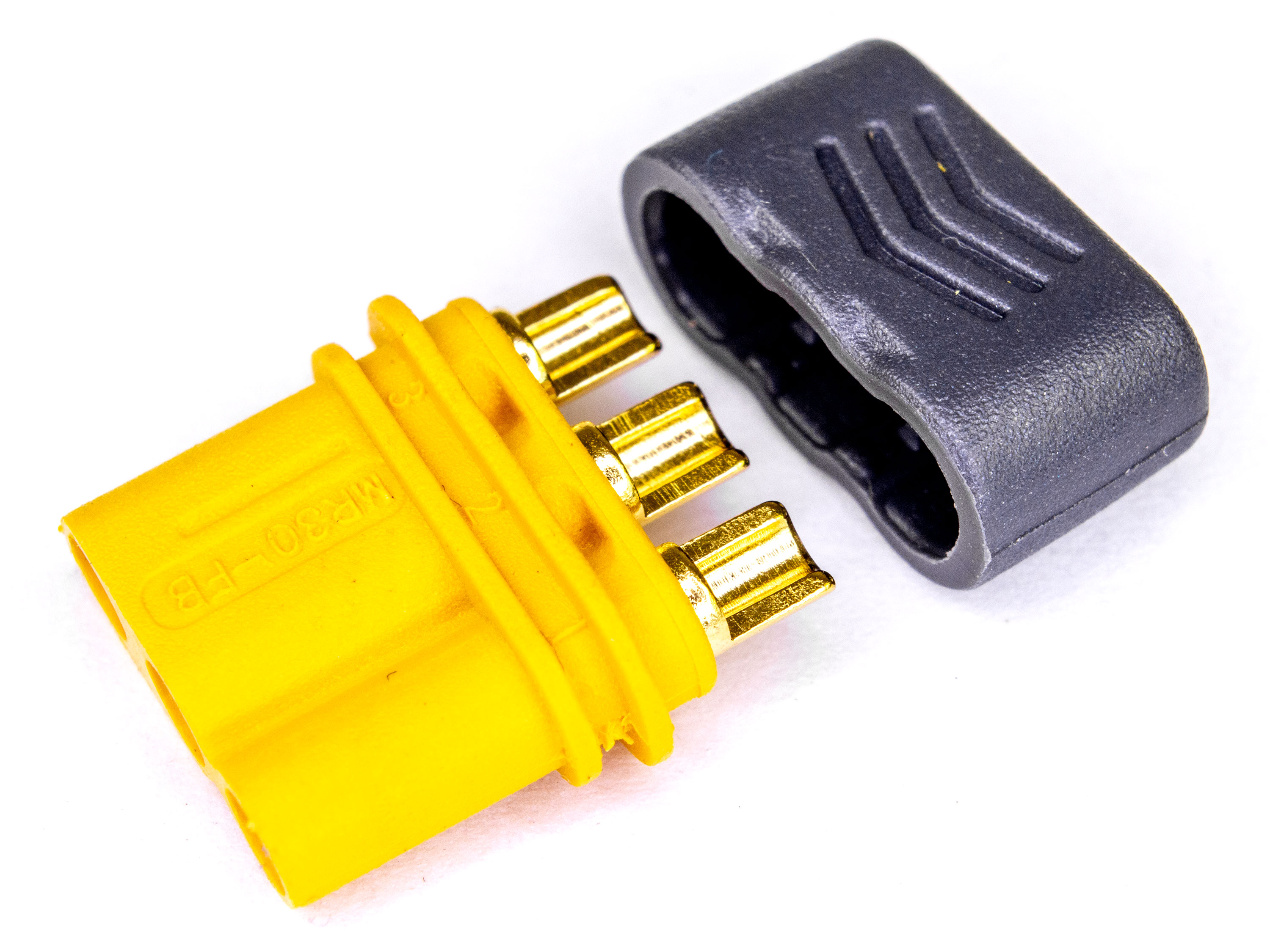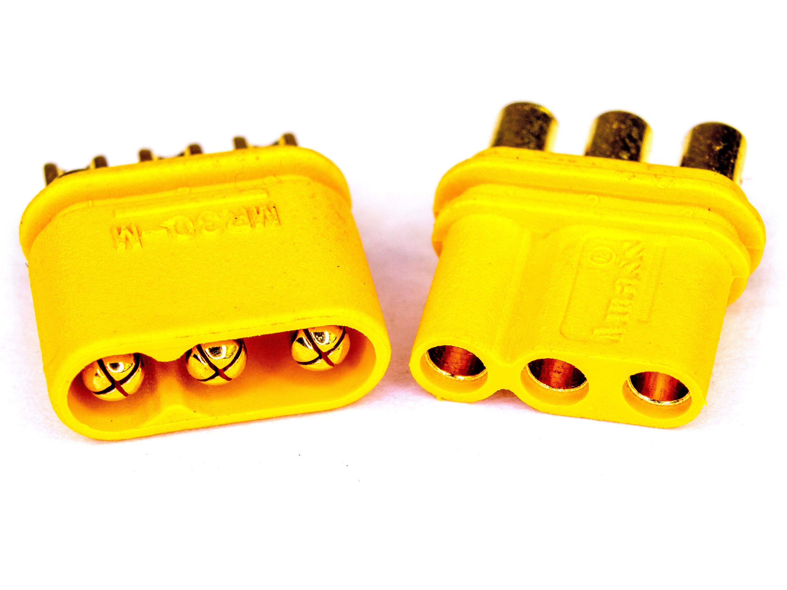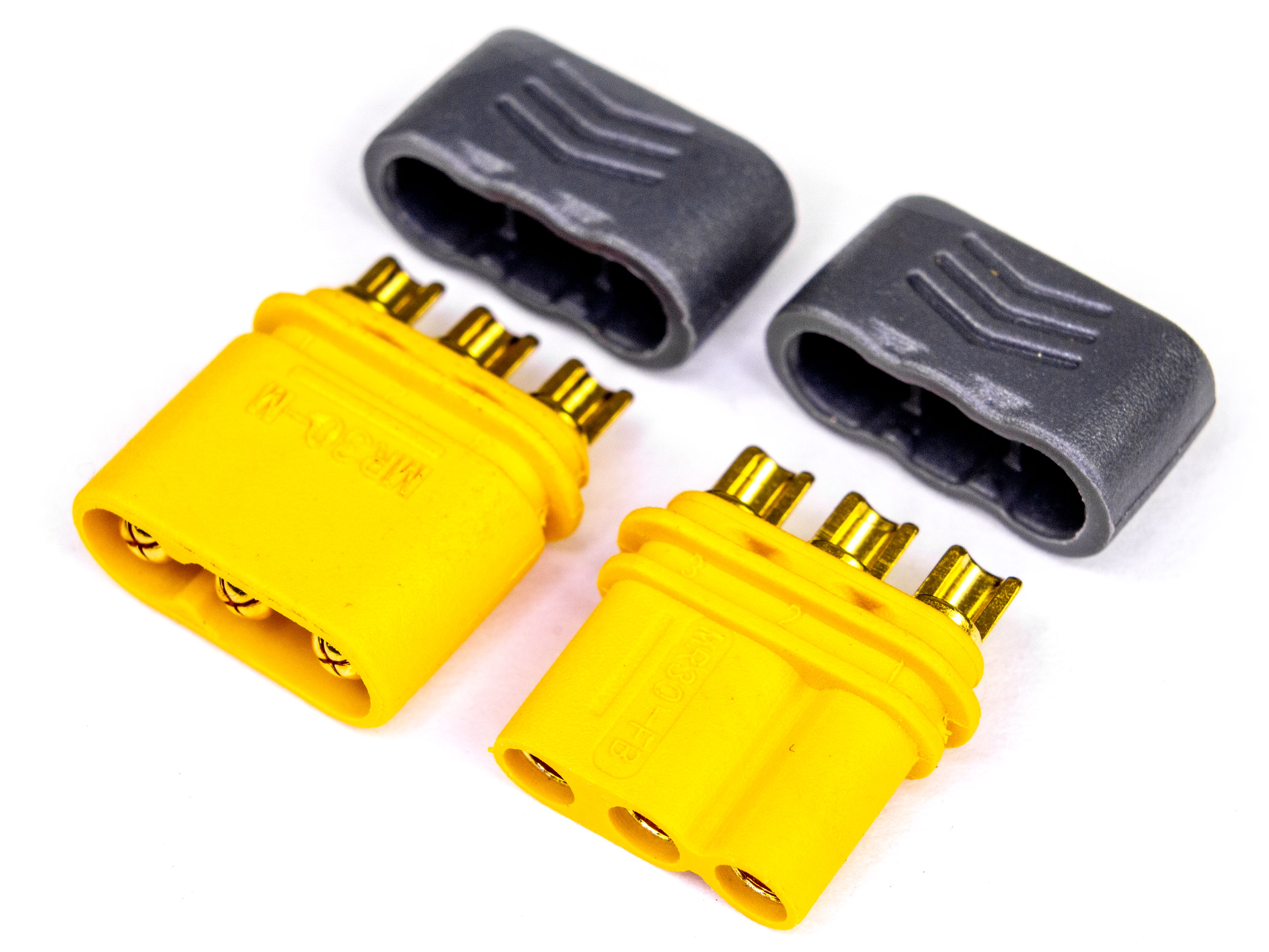 Триполюсні роз'єми будуть чудовим рішенням для з'єднання безколекторного двигуна з різними регуляторами (для моторів, які споживають до 30А). MR30 сумісні зі звичайними 2мм роз'ємами. На корпусі є ключ, завдяки якому гарантується єдине правильне з'єднання. Нейлон стійкий до високих температур, тому у Вас буде достатньо часу щоб надійно припаяти дроти без ризику розплавити корпус роз'єма. Технічні характеристики: - Діаметр контактів: 2мм;