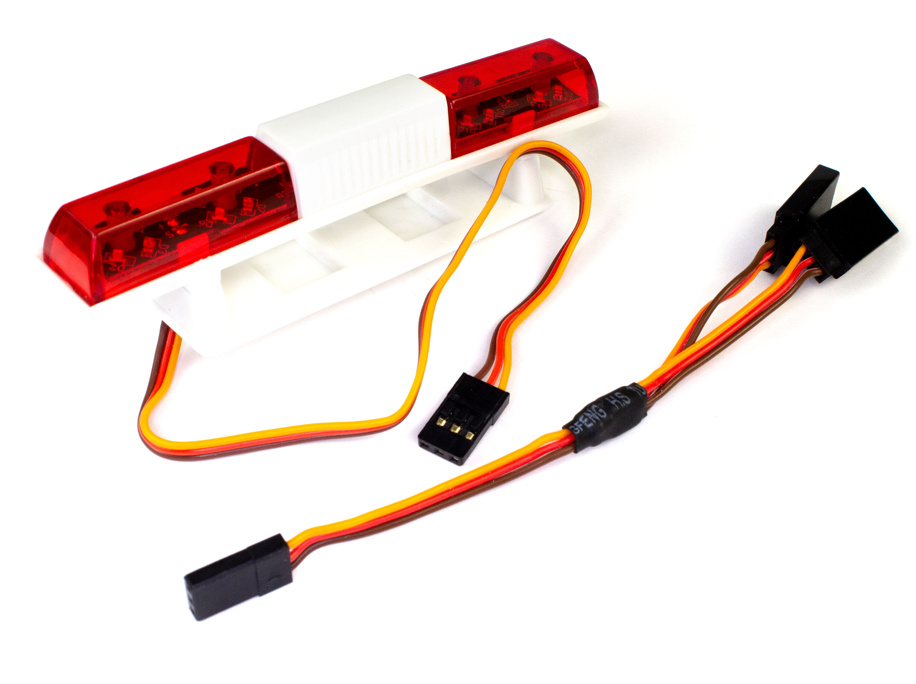Ця світлодіодна мигалка має 5 циклічних режимів роботи і підключається JR роз'ємом напряму у вільний канал приймача. Режими роботи перемикаються за допомогою радіопередавача. Технічні характеристики: