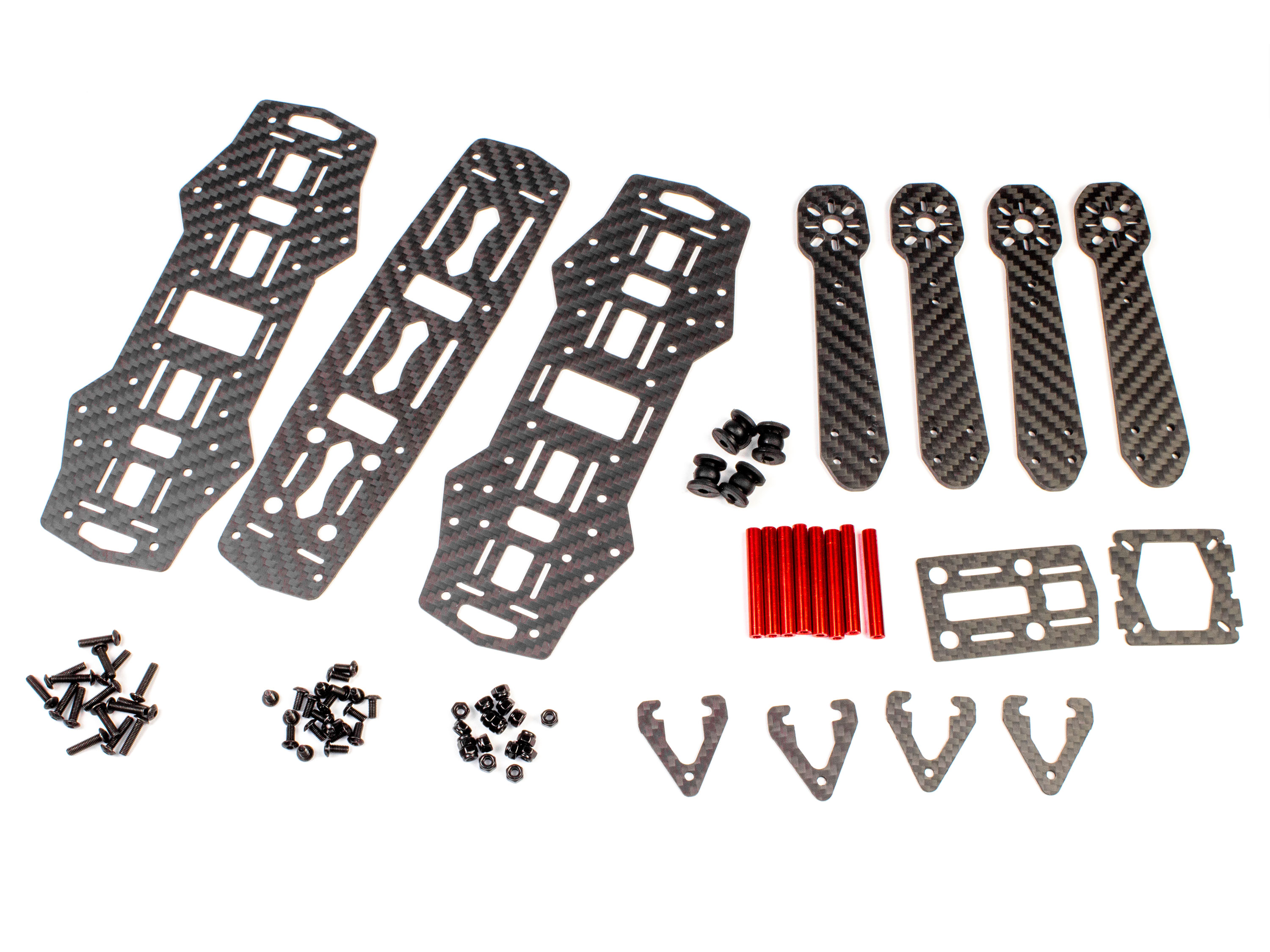 Набір гоночного квадрокоптера початкового рівня на основі карбонової рами ZMR250. В комплекті є майже уся необхідна електроніка для самостійного збору повноцінного гоночного квадрокоптера. Набір має все необхідне, окрім радіоапаратури, акумулятора та відео системи. Потрібно радіоуправління мінімум на 4 канали та LiPO акумулятор 3-4S ємністю 1000-1800мАг (на 3S буде літати повільніше ніж на 4S). Для польотів по камері потрібно докупити камеру, відеопередавач та відеоприймач або FPV-окуляри. Технічні характеристики: