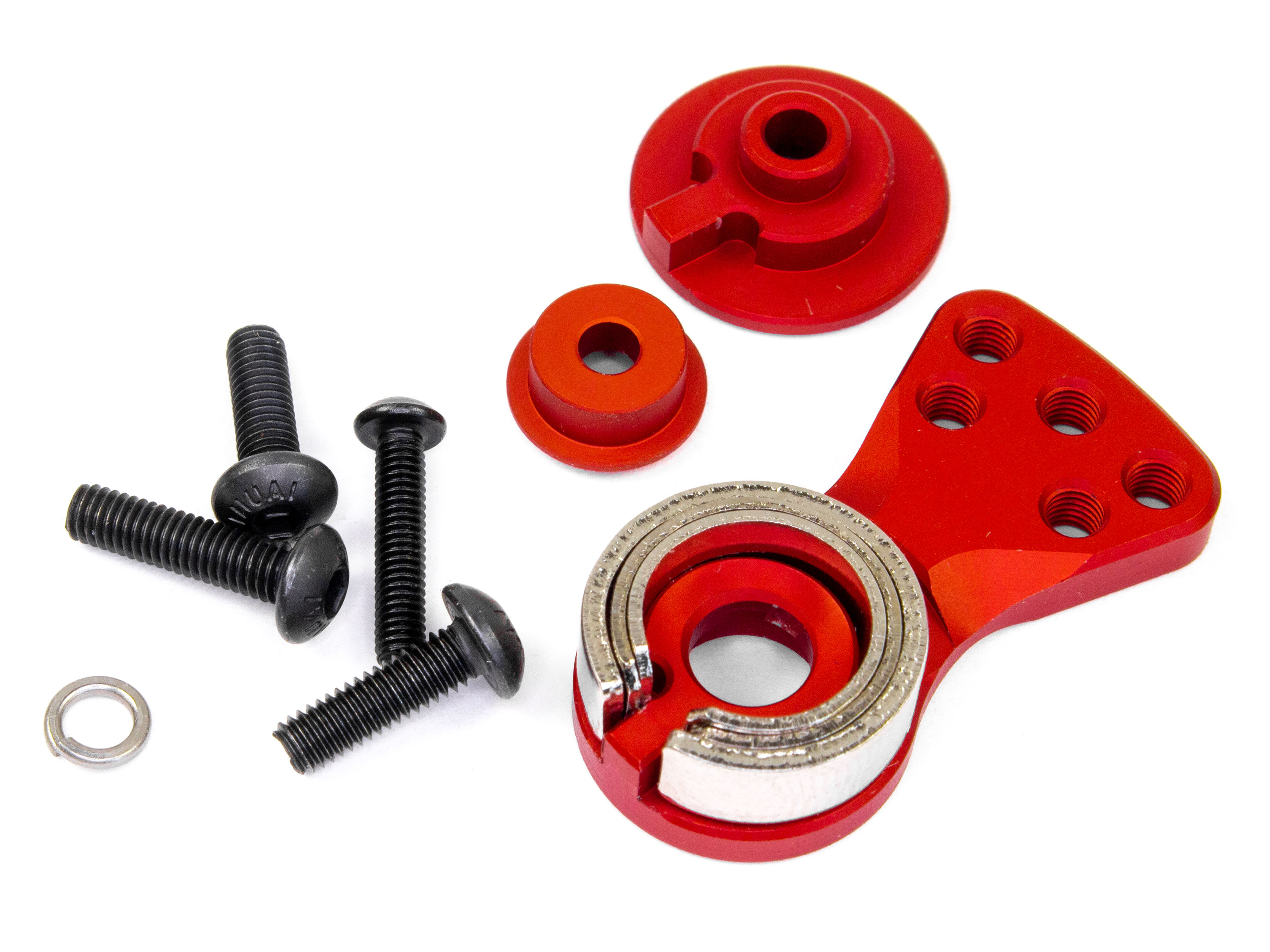 Міцний сервосейвер з алюмінієвого сплаву використовується для захисту сервомеханізмів. Встановлюється на вихідний вал сервоприводу та використовується одразу як качалка. Посадковий отвір на 25 зубів є універсальним та сумісним з більшістю сервомеханізмами стандартного розміру. В комплекті встановлено три пружини, комбінуючі які Ви можете підібрати зусилля яке необхідно саме Вашій моделі. Технічні характеристики: - Посадковий отвір: 5.6мм (25T);