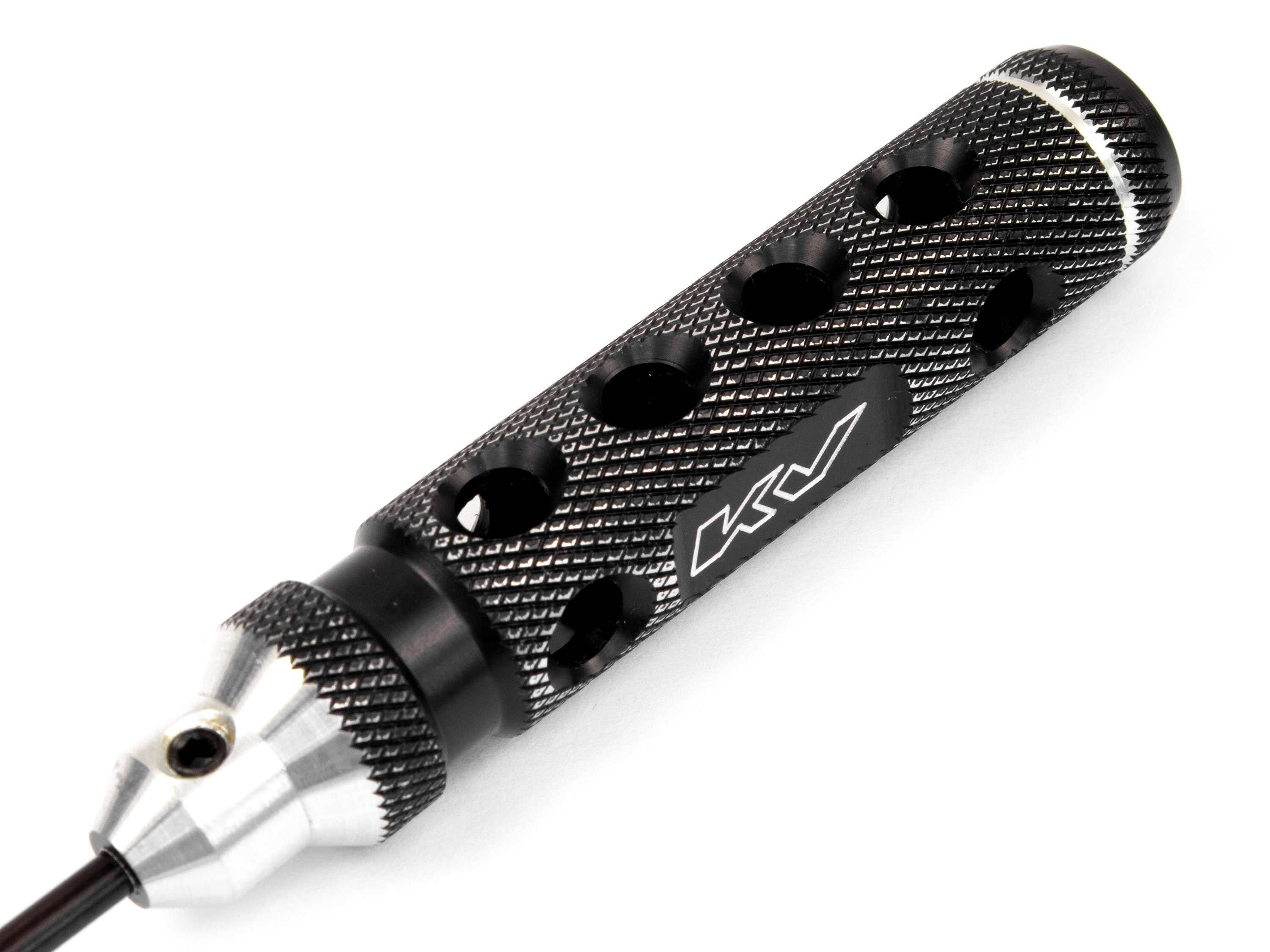 Високоякісні ключі від українського виробника KV. Ключі KV відрізняються високим експлуатаційним ресурсом, що робить їх особливо популярними серед моделістів. Шестигранник виготовлений з невеликим конусом, що гарантує відсутність люфта жала ключа, як в нових гвинтах так і в доволі зношених. Жало виготовлено з високовуглецевої вольфрамо-молібденової сталі, особливістю якої є висока твердість та зносостійкість. Жало надійно фіксується до ручки за допомогою потайного гвинта M4x4. Ручка має наскрізні отвори для зменшення загальної ваги. Технічні характеристики: