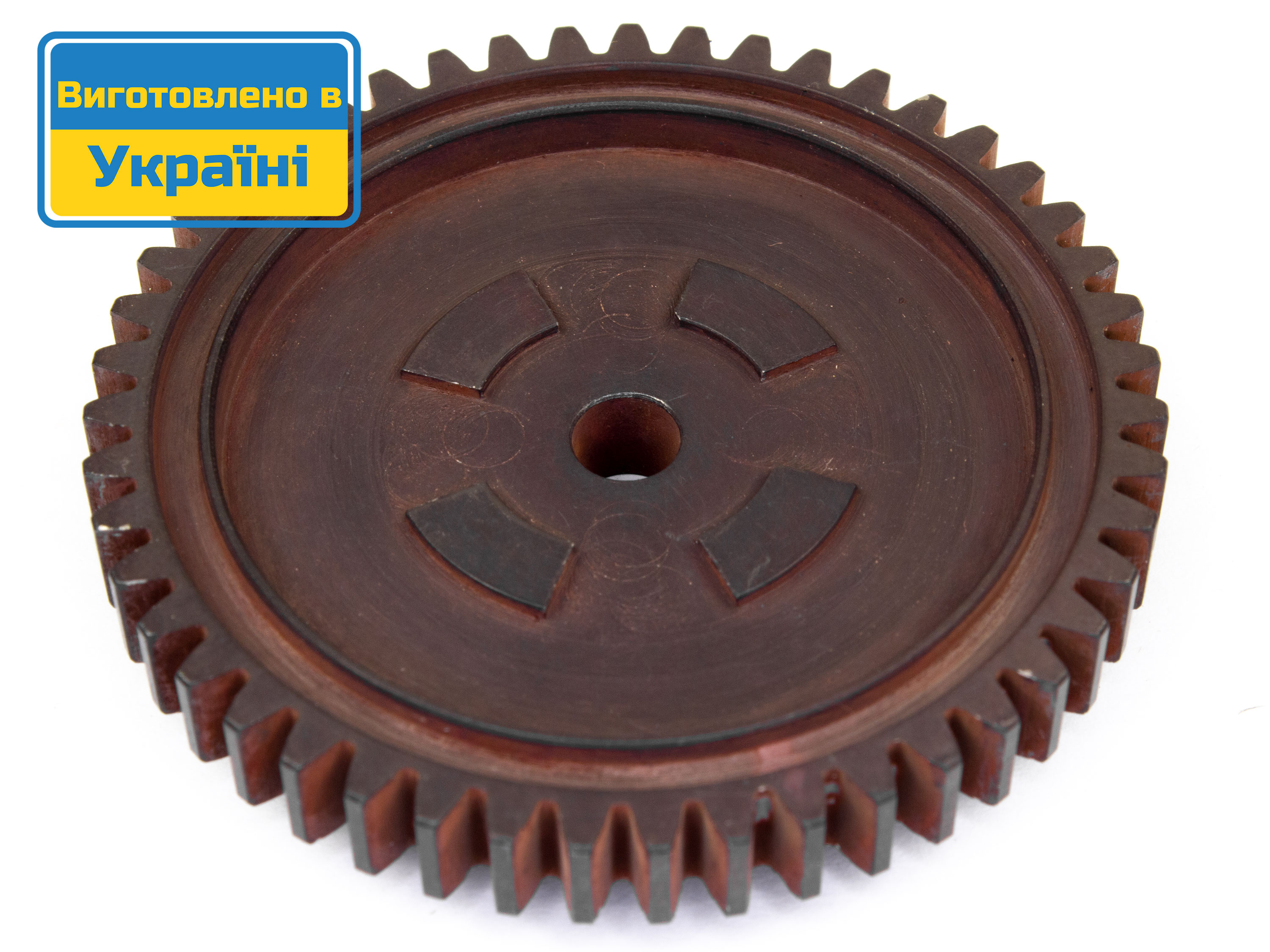Дякую за Ваше звернення. На даній строрінці є дві фотографії шестерні. Одна з одного боку, інша - з іншого. Дана шестерня є для HPI Savage. Можете в інтернеті подивитися фото даної моделі, там видно як встановлюється шестерня (з одного боку пружина, а з іншого фрекційна пластина яка притискається диском).