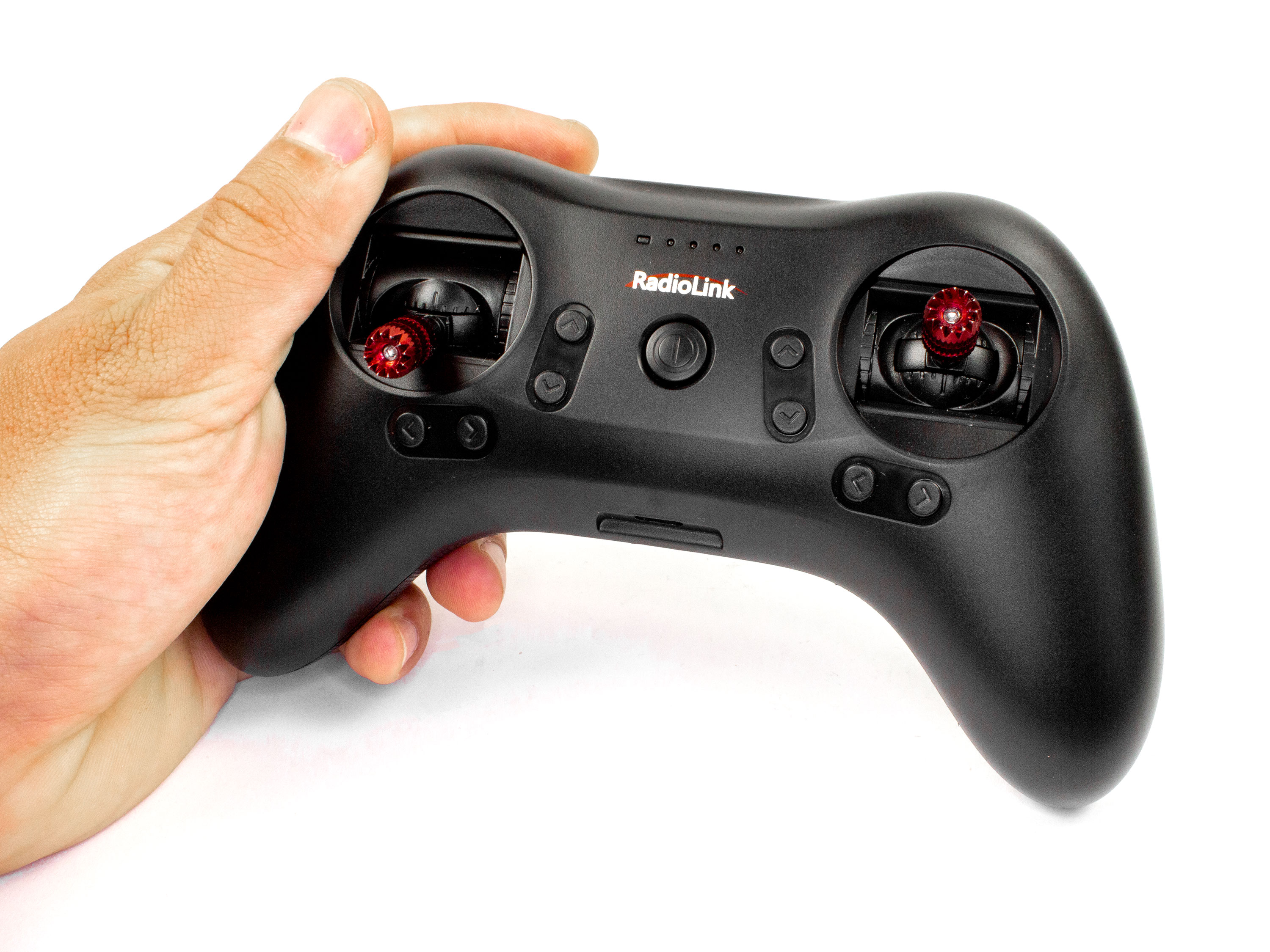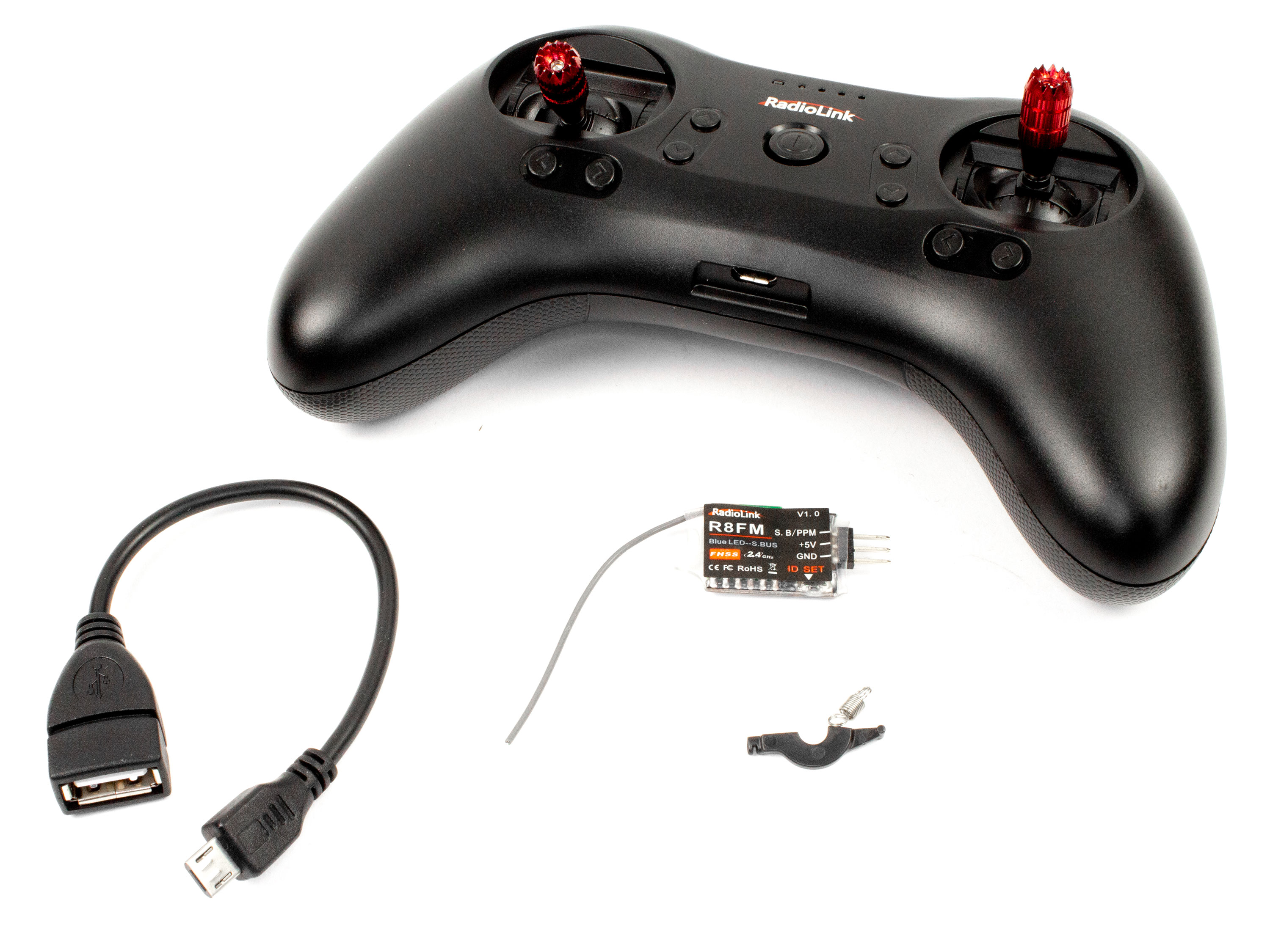 Радіоапаратура Radiolink T8S виконана у максимально ергономічному дизайні. Передавач легкий, компактний та зручний. Підходить для використання з будь якими типами моделей (мультикоптери, літаки, автомоделі тощо). Окрім стіків та кнопок для тримування, передавач оснащений двома трьохканальними перемикачами, кнопкою без фіксації і пропорційним колесом (крутилкою). В комплект до передавача входить міні приймач Radiolink R8FM з підтримкою режимів роботи: SBUS і PPM та з робочою дальністю до двох кілометрів в залежності від зовнішніх умов. Для перемикання режимів приймача потрібно натиснути кнопку на приймачі два рази підряд. В режимі роботи SBUS світяться синій і фіолетовий світлодіоди. У PPM режимі світиться червоний світлодіод. Передавач має велику кількість параметрів які можна налаштувати та змінити за допомогою додатку Radiolink для Android або програми Radiolink для ПК. Дана версія апаратури має вбудований модуль Bluetooth для можливості безпровідного з'єднання з смартфоном за допомогою додатку Radiolink. Для цього потрібно ввімкнути передавач, запустити додаток та натиснути "Connect", після чого обрати в списку передавач Radiolink. На апаратурі виведено MicroUSB роз'єм для заряду акумулятора та оновлення прошивки а також для можливості провідного з'єднання зі смартфоном Android або комп'ютером. Завдяки малому споживанню апаратури, повного заряду акумулятора вистачає на 5 годин безперервної роботи. На апаратурі є чотири світлодіоди для індикації статусу заряду акумулятора. Попередження про розряд акумулятора відбувається блиманням одного світлодіода та звуковим сигналом. Передавач сумісний з приймачами Radiolink: R8F, R8EF, R8FM, R7FG, R6F, R6FG, RF4. Технічні характеристики передавача T8S: