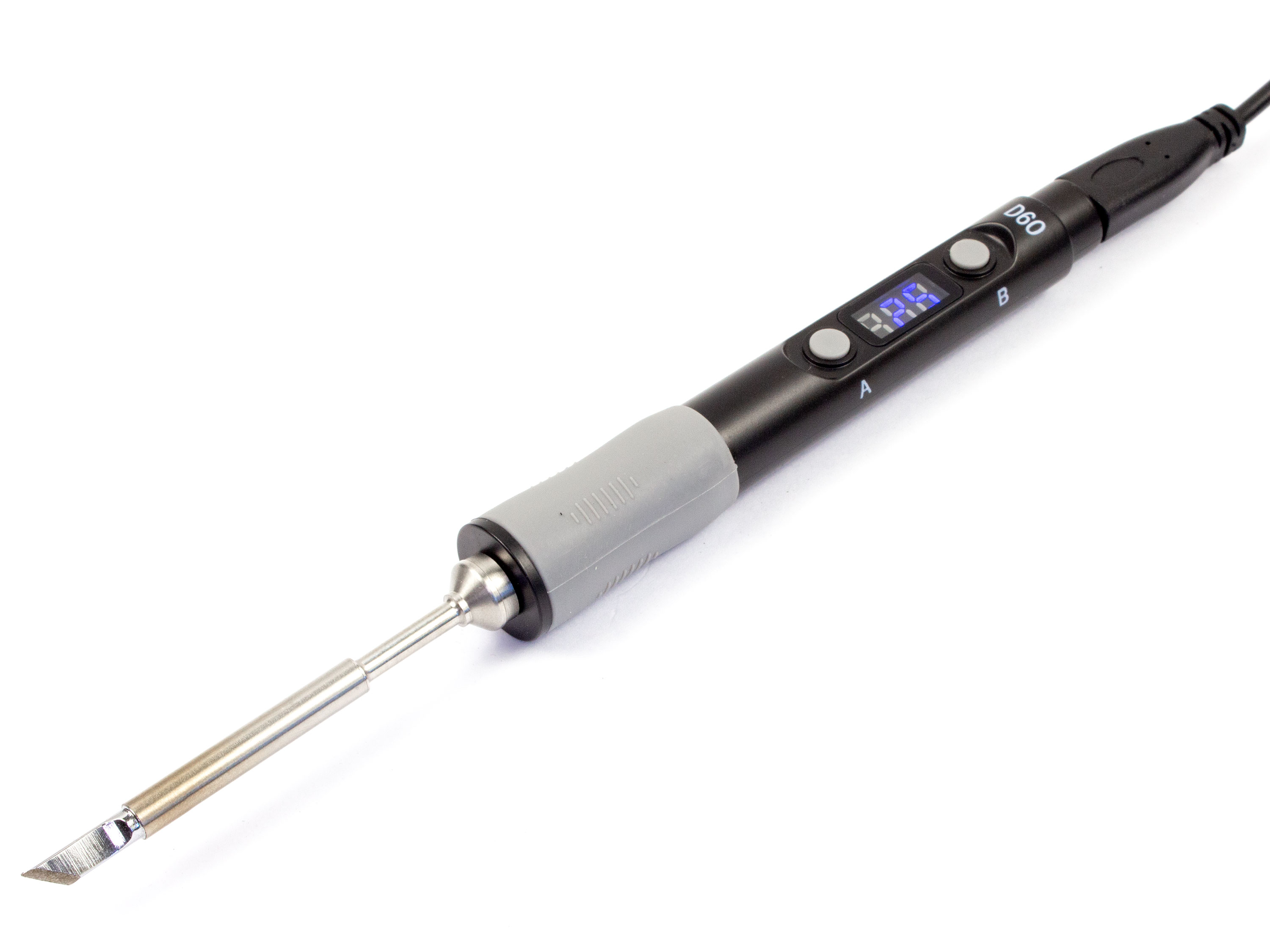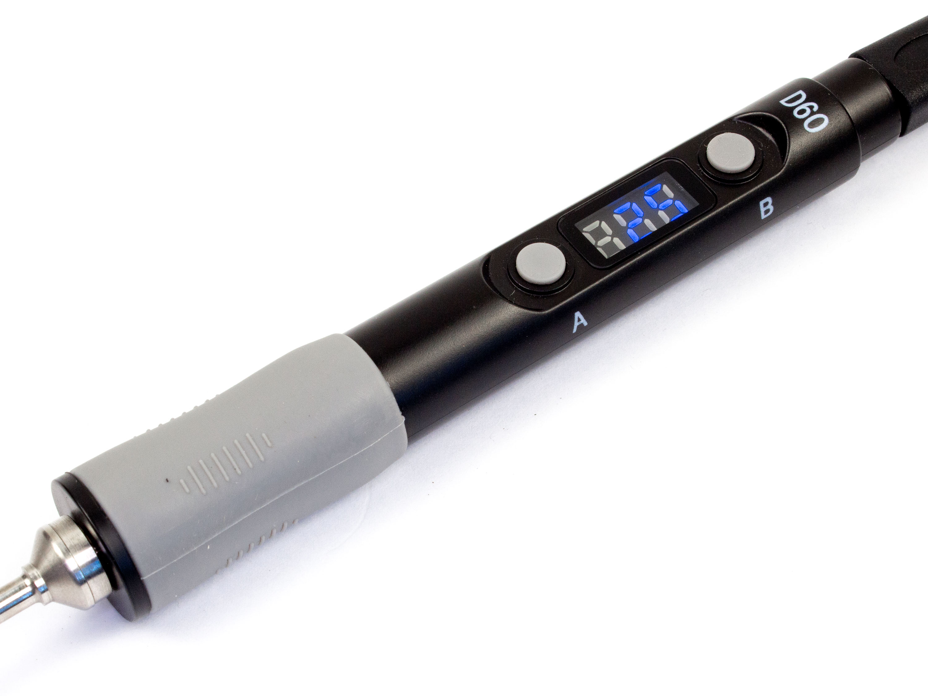 Параметри які встановлені по замовчуванню можна змінити кнопками на самому паяльнику. Потрібно в режимі очікування натиснути кнопку B і обрати параметр, який хочете змінити. Щоб змінити значення потрібно затиснути кнопку A чи B. Робочу температуру паяльника можна регулювати утримуванням кнопки A для пониження температури та кнопки B для підвищення температури. Особливості: