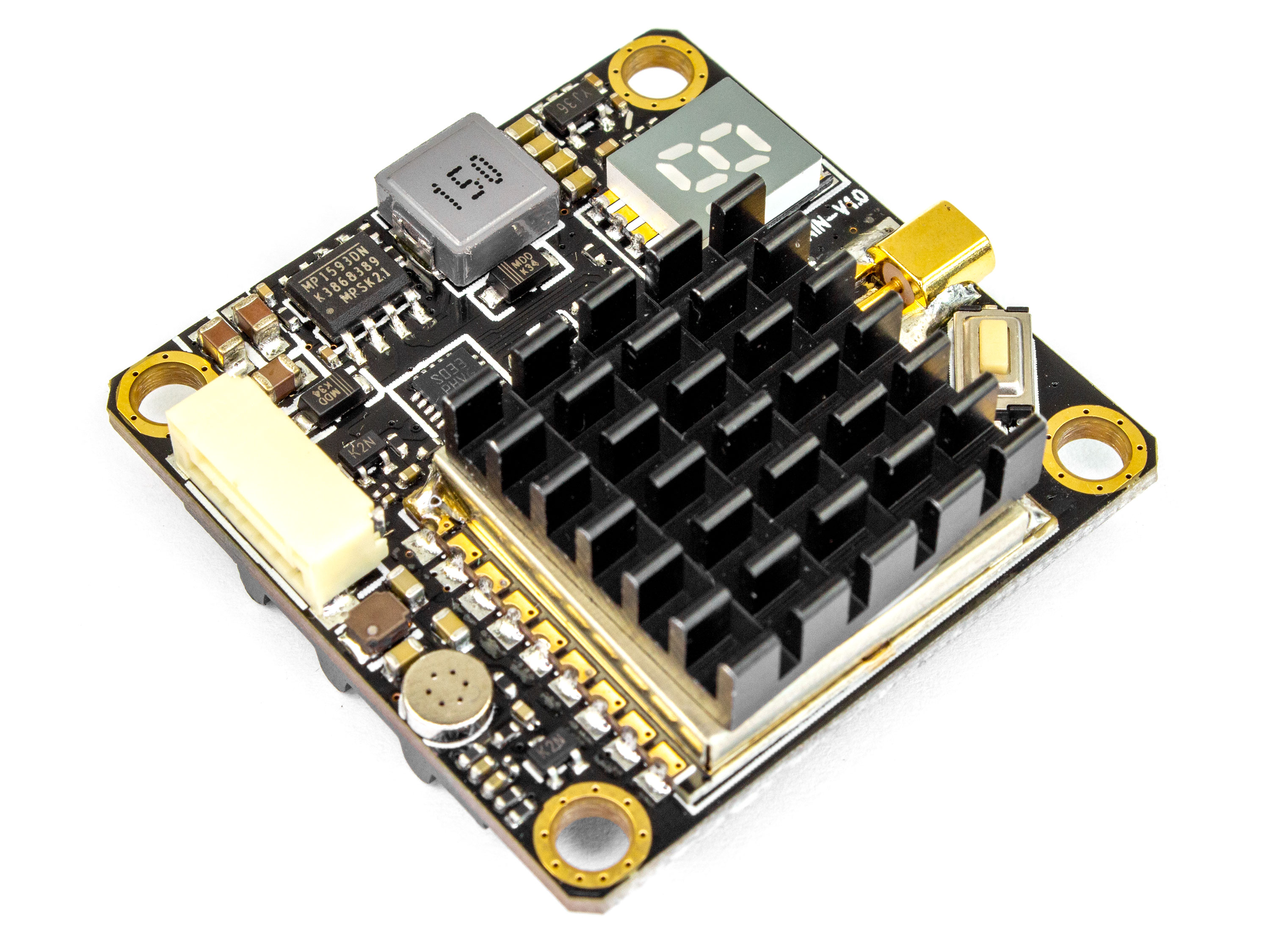 Для забезпечення ефективного охолодження передавача, плату оснащено двома масивними радіаторами, які приклеєні з обох сторін за допомогою теплопровідного клею.