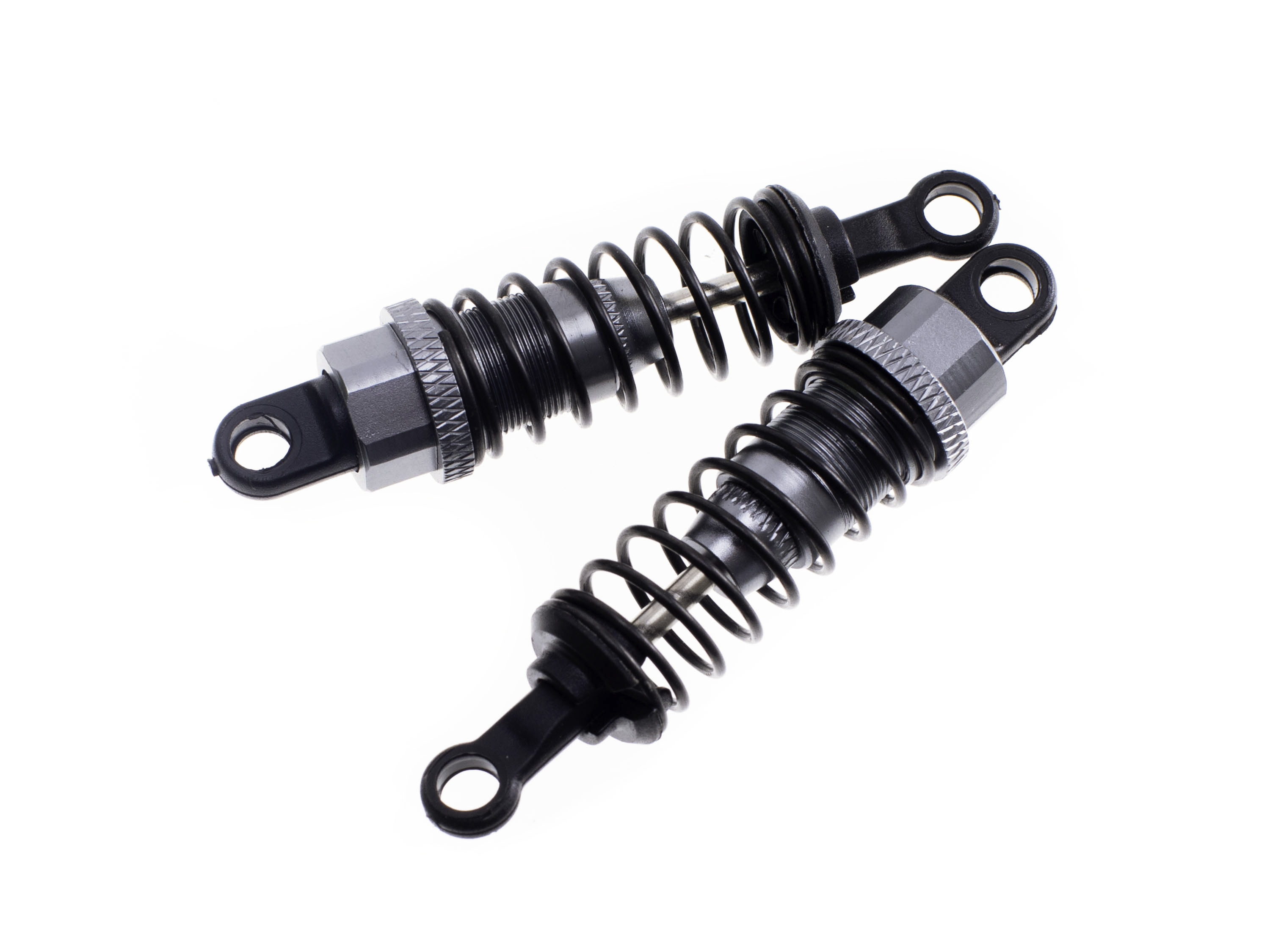 Алюмінієві амортизатори для автомоделей 1/18 та 1/16 масштабу. Отвори кріплення розраховані під кульовий шарнір діаметром 4.8мм. Для користування, амортизатори потрібно наповнити оливою. Технічні характеристики: - Загальна довжина амортизатора: 64.8мм;